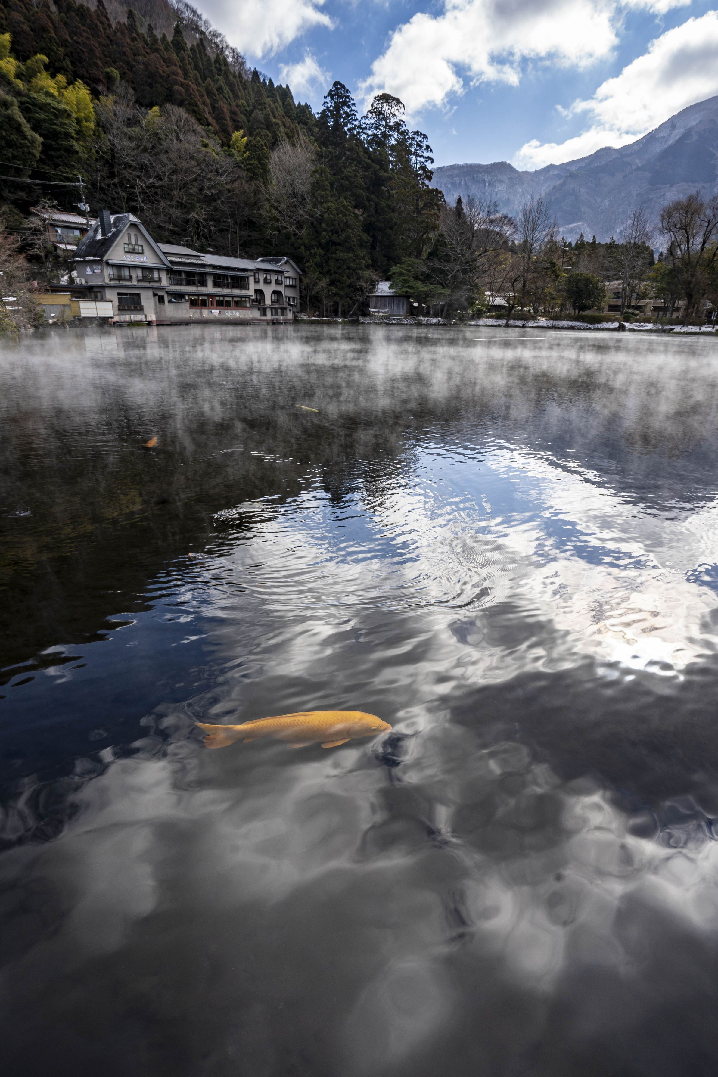 12/27早朝 湯布院の金鱗湖で撮影