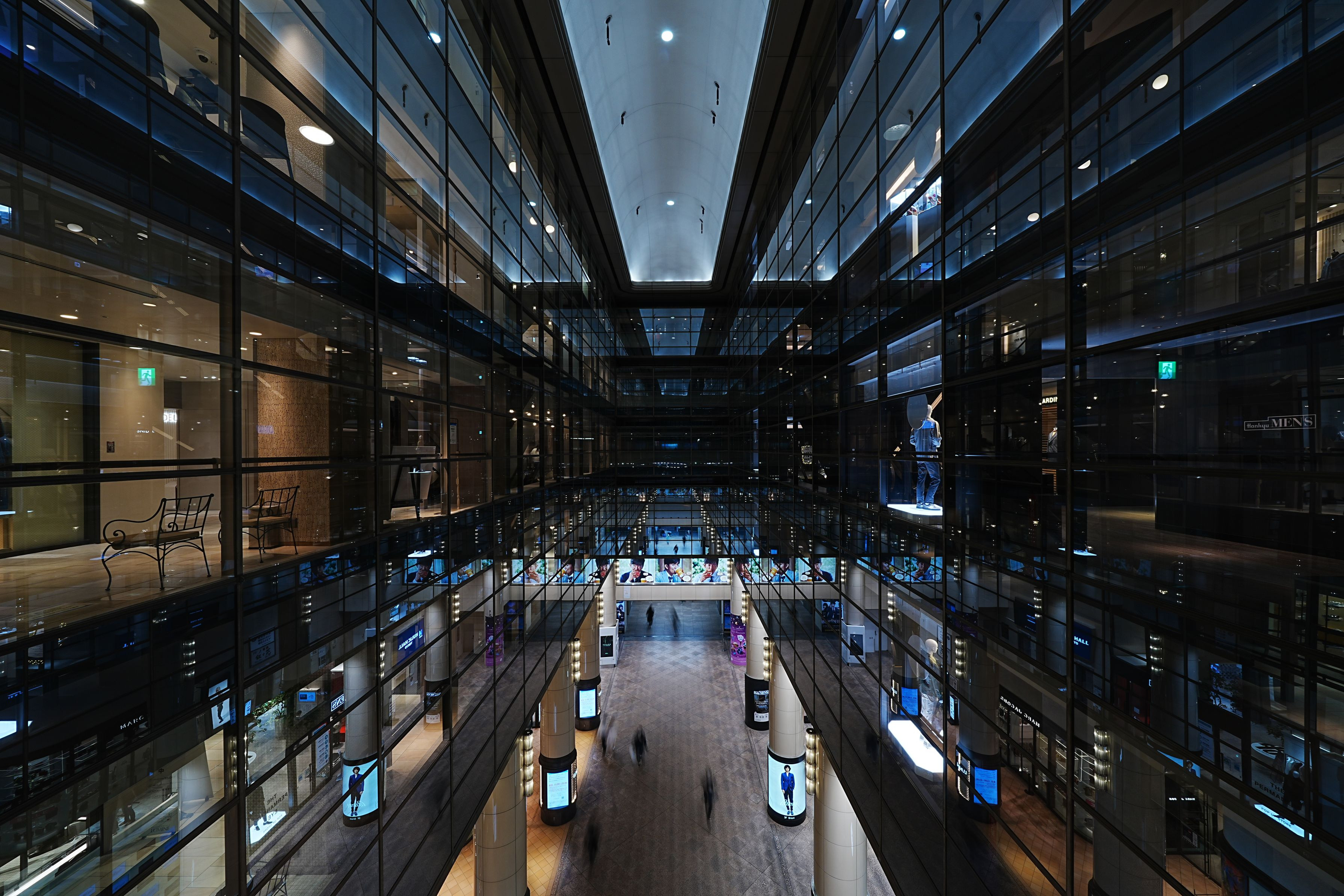 有楽町マリオン内で撮影しました。 阪急メンズとルミネが左右対称に見えて面白かったです。