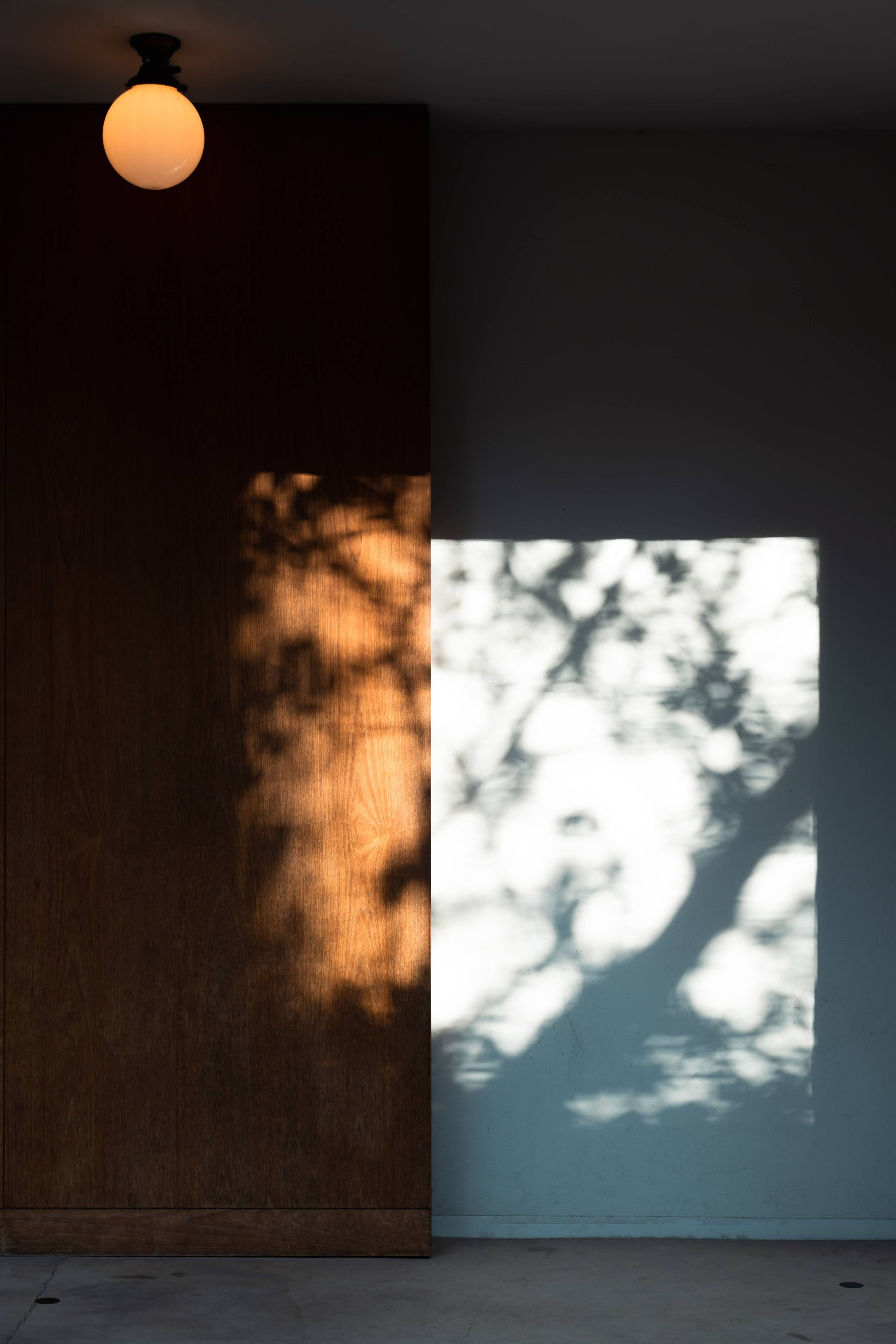 目黒川沿いの店舗の壁面に落ちる木々の影が自然が描いた絵画のようで収めました。