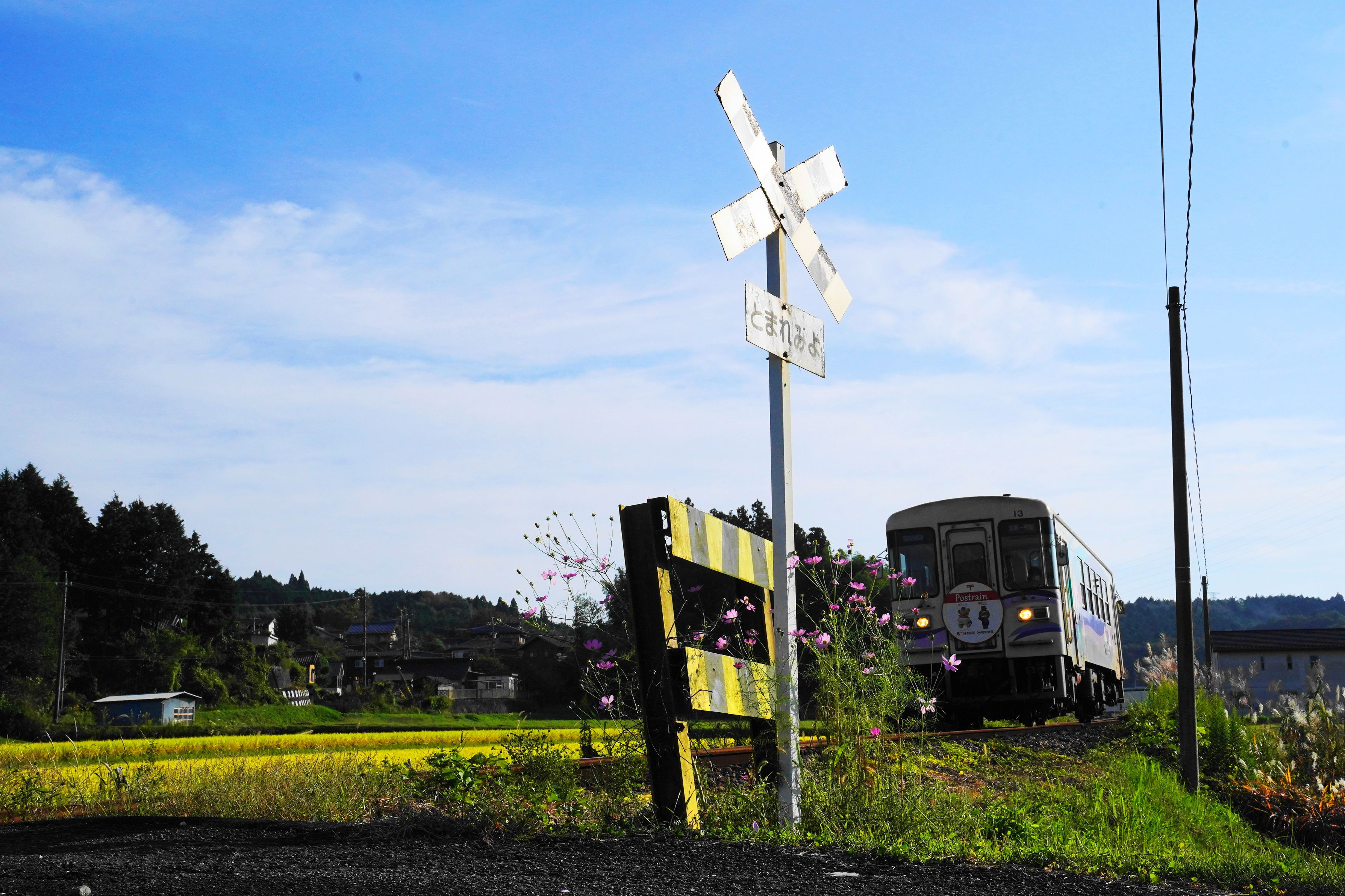 第三セクターの明知鉄道にある小さな、遮断機も無い踏切での一コマです。