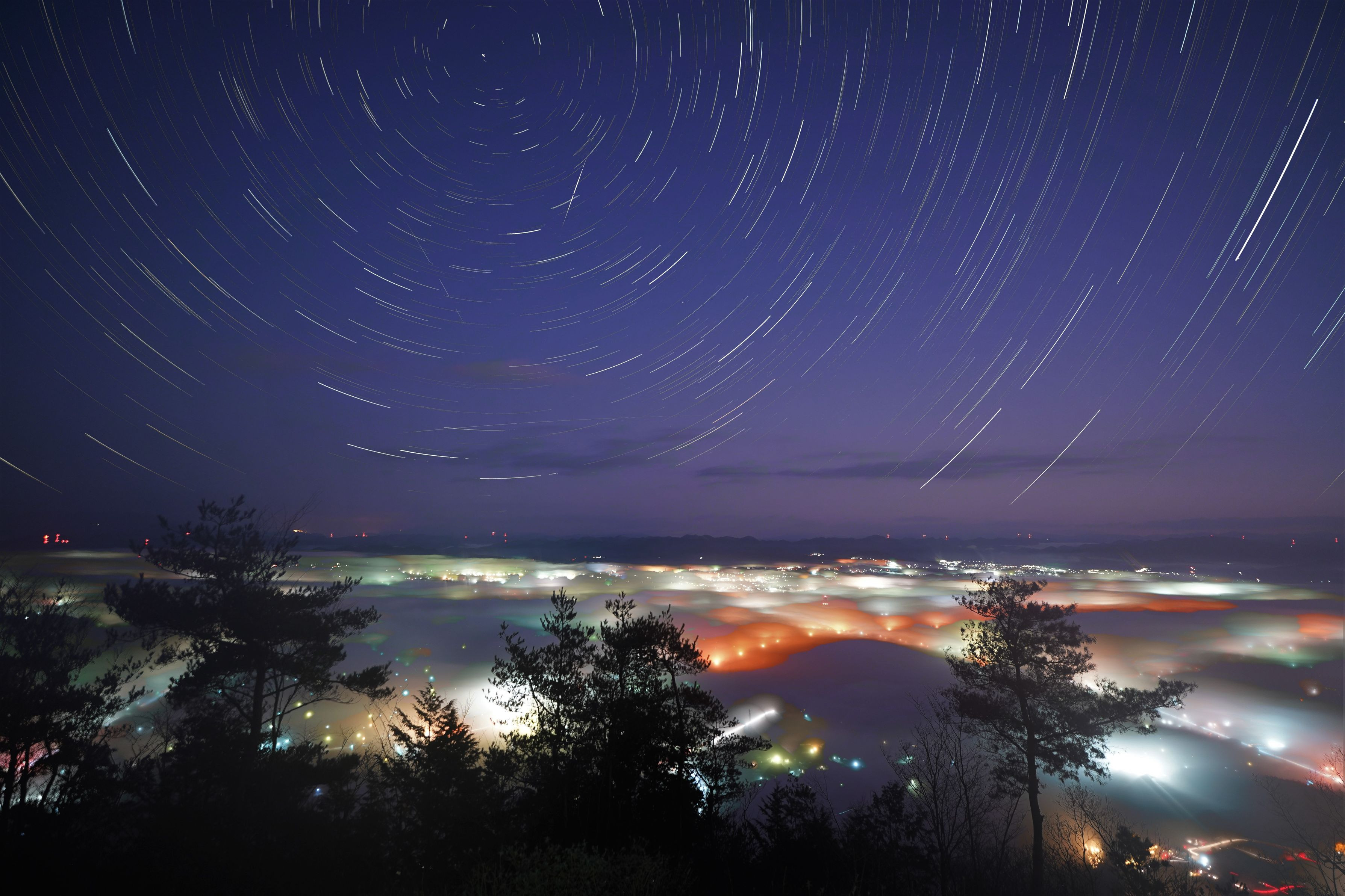 雲海と星の軌跡 夜明け前に撮りました