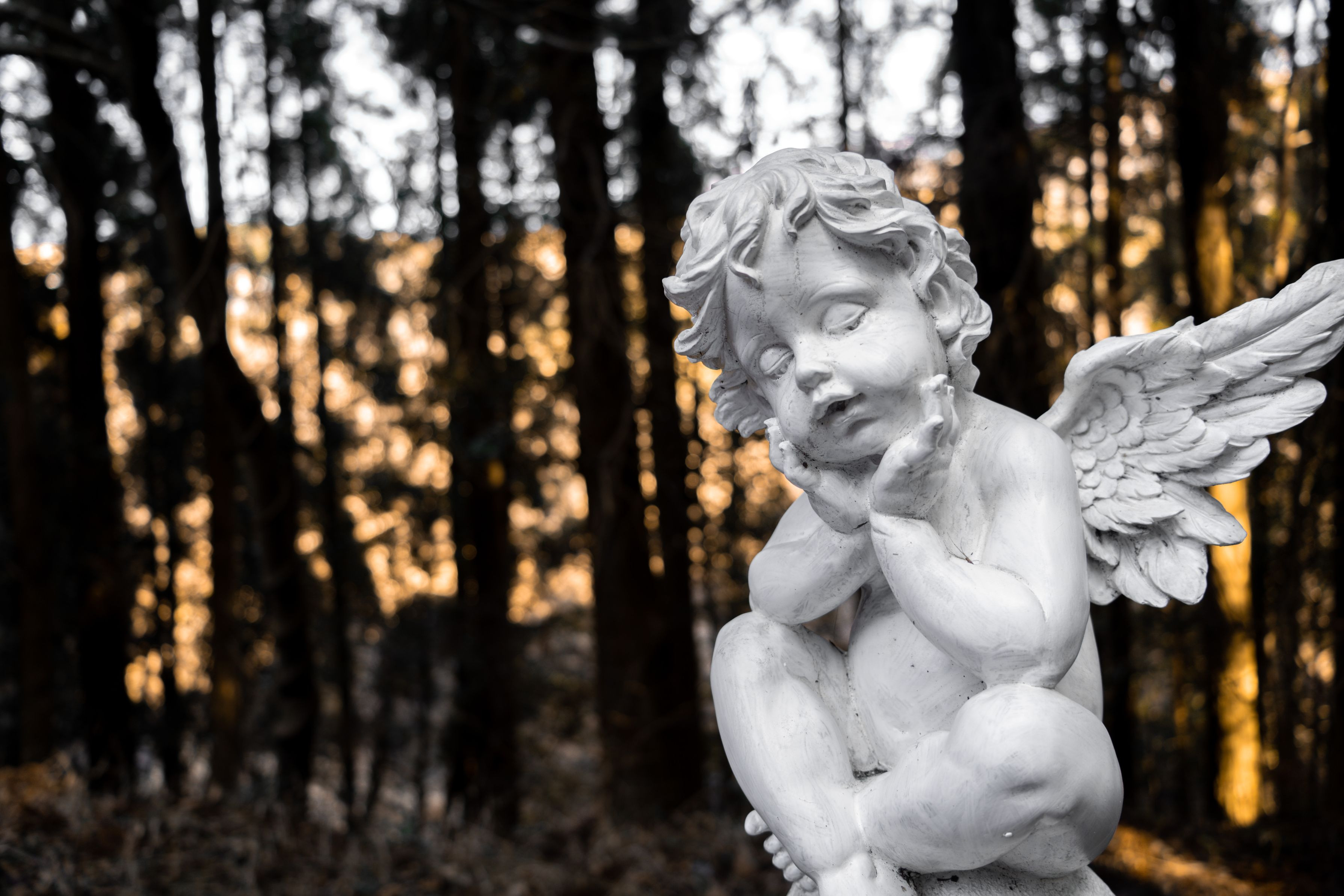 森の中にいた天使の像