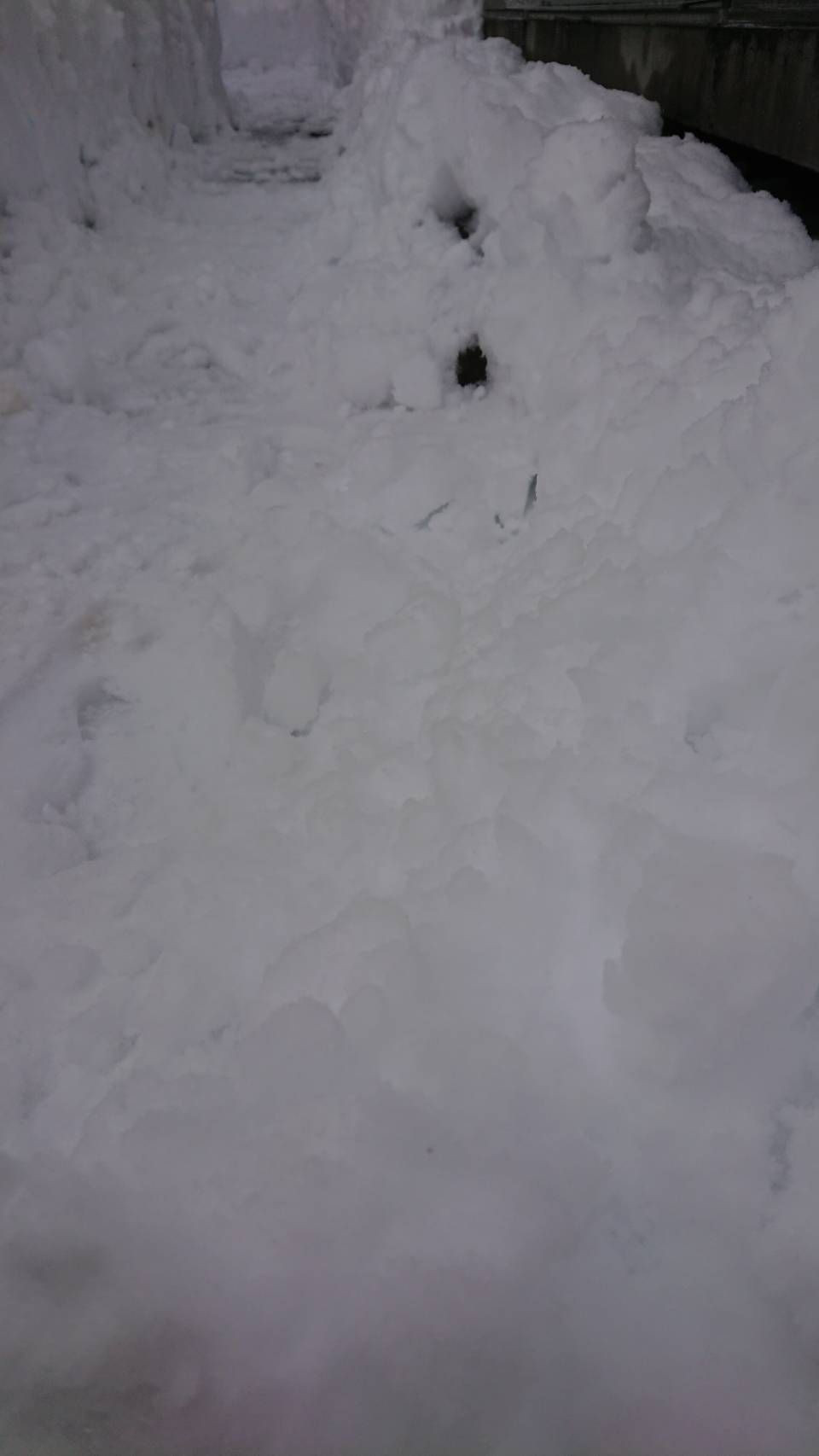 たった10mの雪かき 重くておもくて30分もかかってしまった 老体にはきつい作業です‥助けて