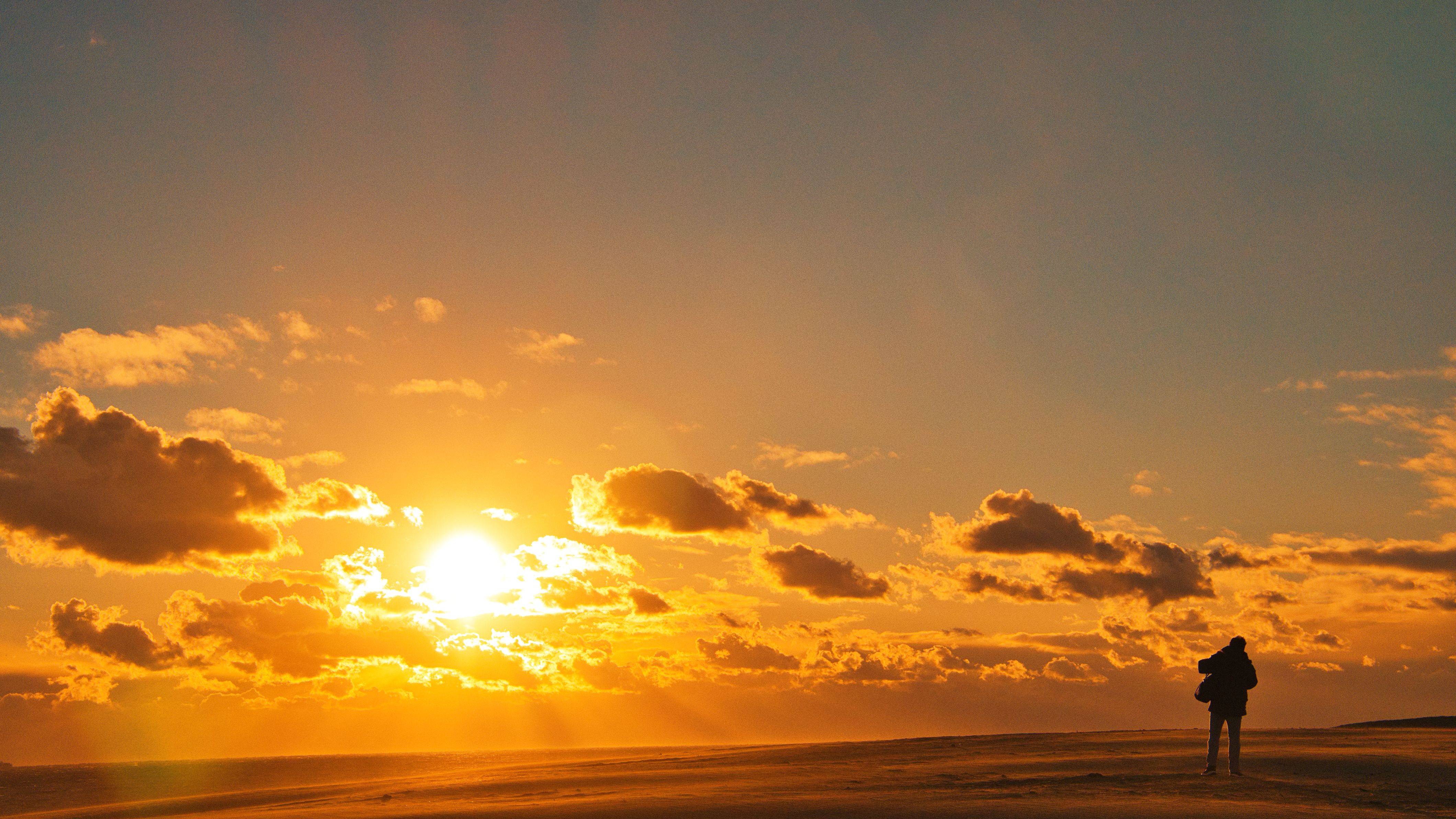 風が強い砂丘の夕暮れ。 写真を撮っている人がいたのでシルエットで入ってもらいました(^-^;