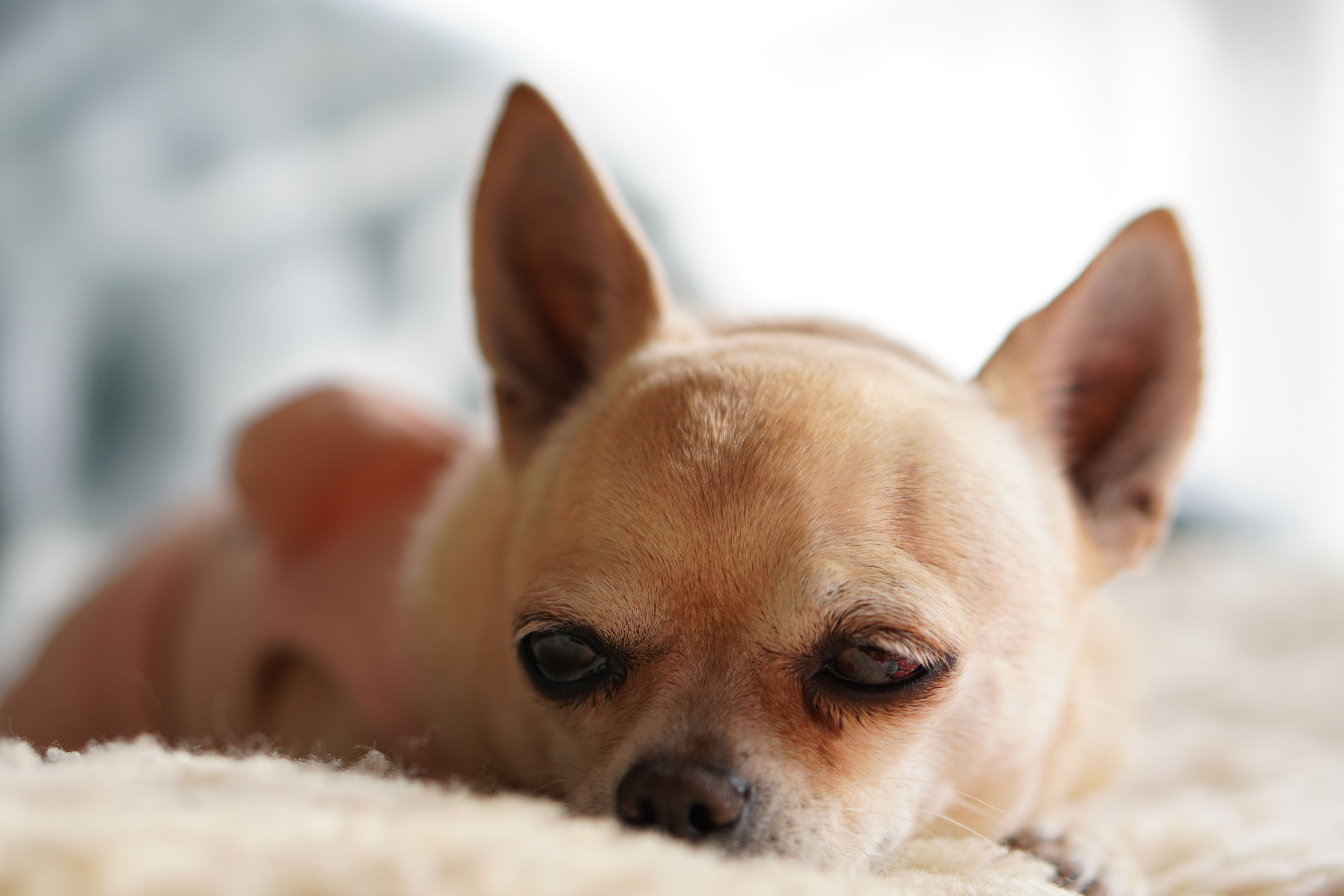 今日は雪も降り寒いし、散歩に行けませんでした。 ムートンの上で、まったりしてるところを撮って見ました。 眠たくて仕方ないようでした。