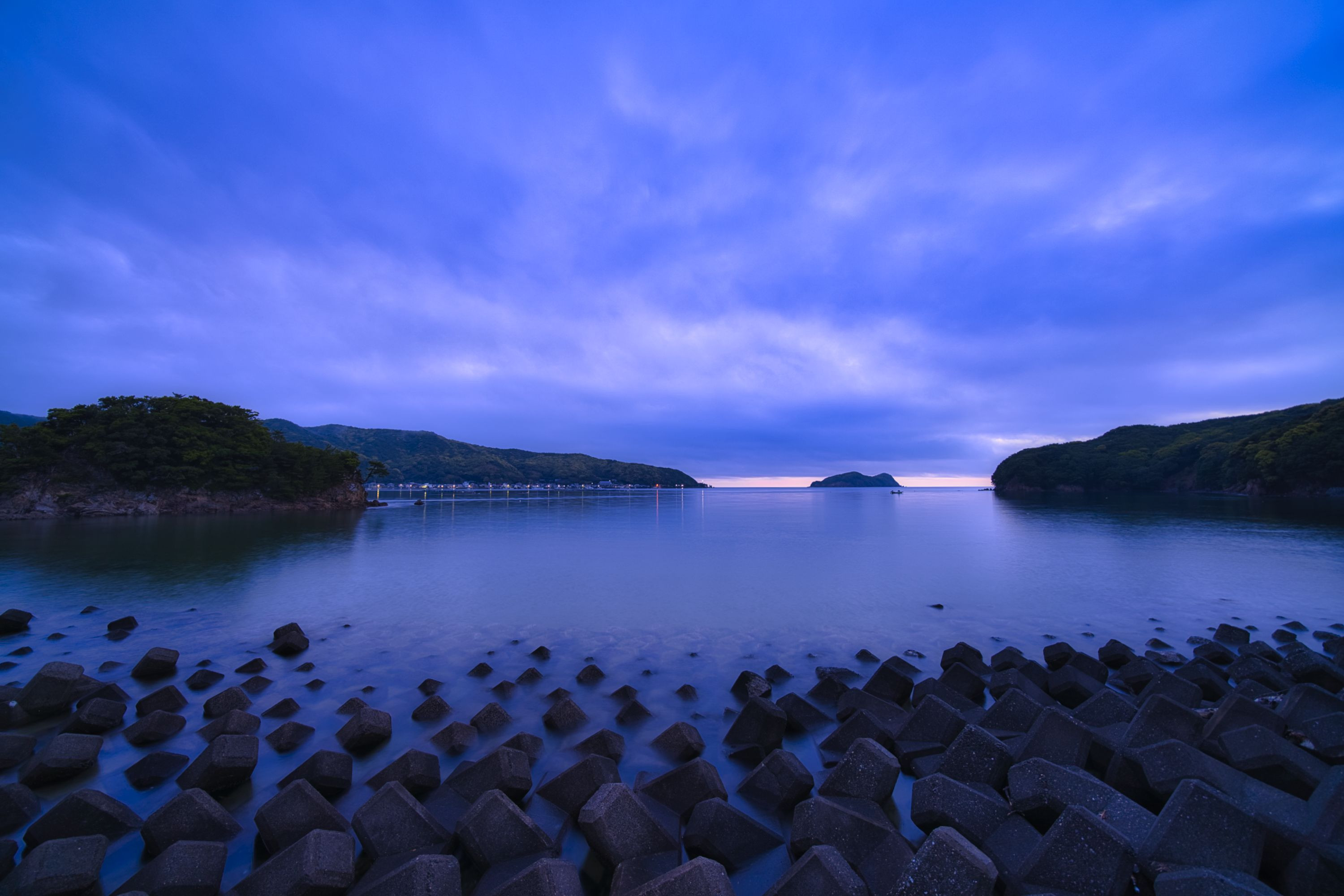 早朝の凍るように静まりかえった海