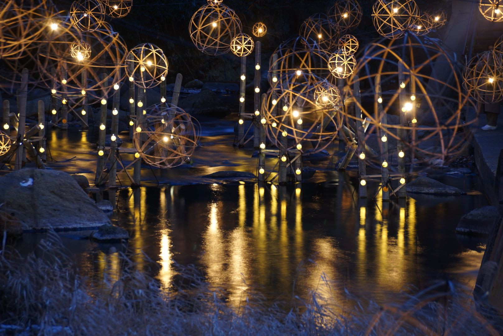 湯灯り…2幻想的な風景は実際に行って見て感動してください! 川沿いの旅館からの部屋のカップルさんは窓際の椅子に座り湯灯りを見てました。羨ましく思いました。