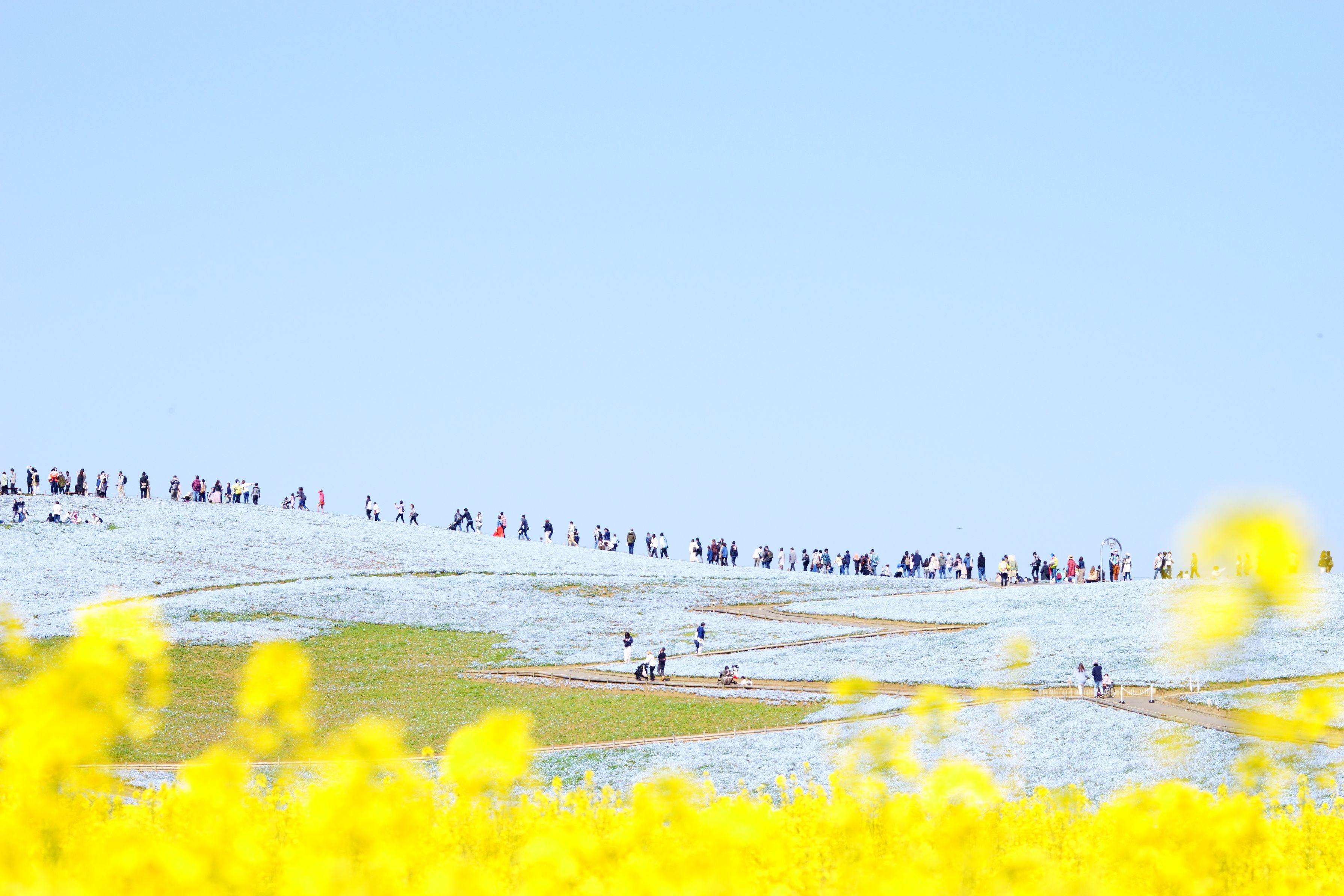 ここのところ寒いので過去の写真をあさっていたら暖かそうな写真を見つけました。 ひたちなか市の国営ひたち海浜公園では毎年、ネモフィラと菜の花の共演を見ることができます。 人がいっぱい来てくれるっていいことですよね・・・。