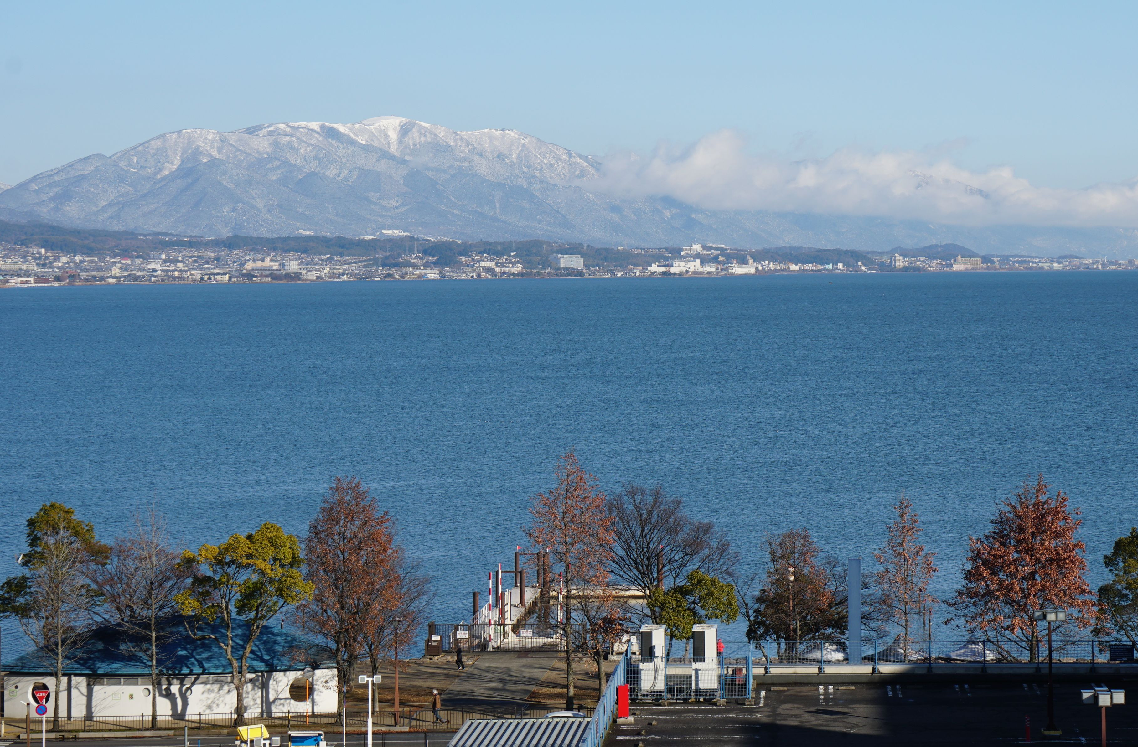 湖東とは異なり、湖西の山は積雪して冬らしさを醸し出しています。