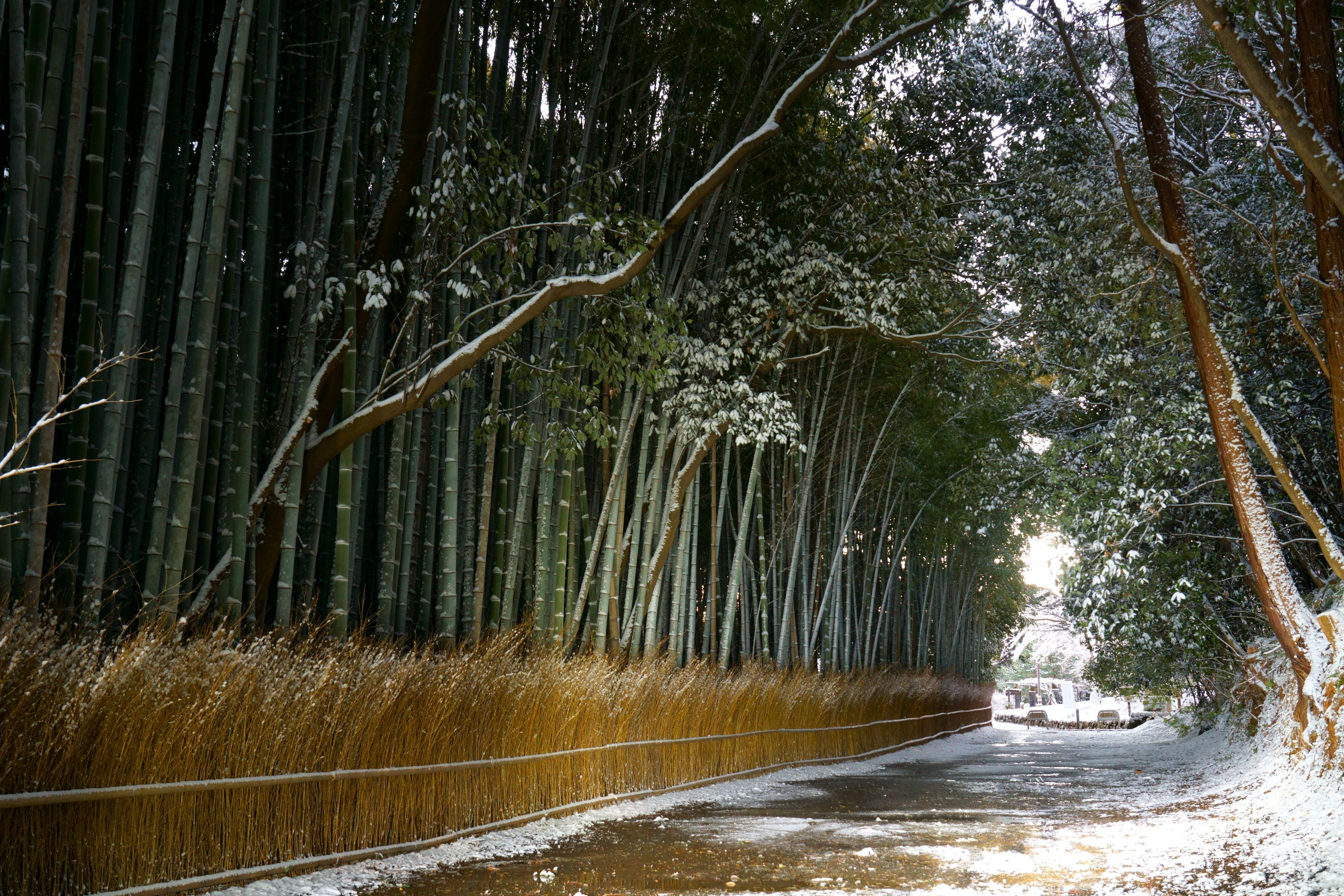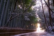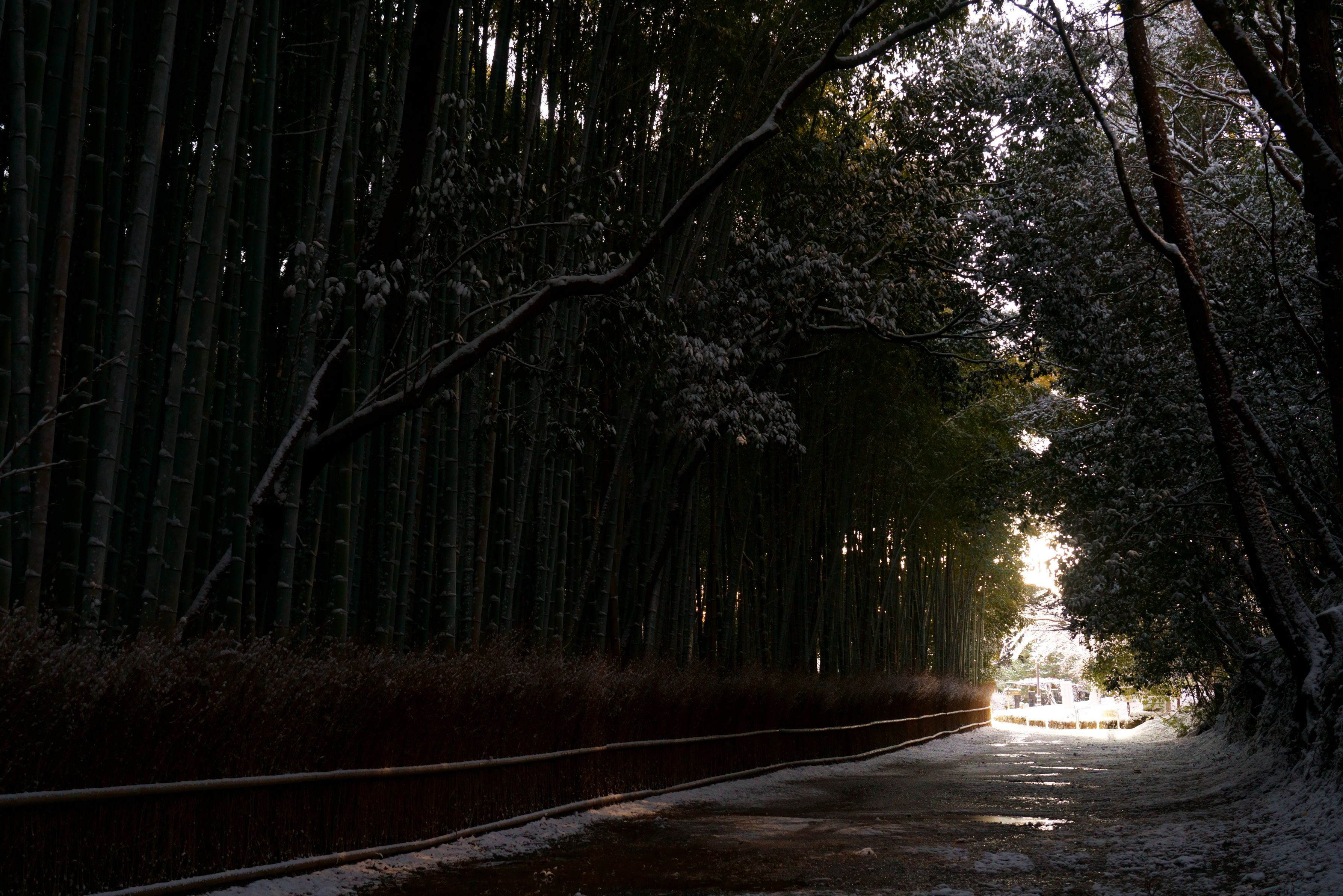 1枚目、まだ暗いなかを散歩の人が持つ懐中電灯(たぶんLEDライト)で竹林が浮かび上がりました