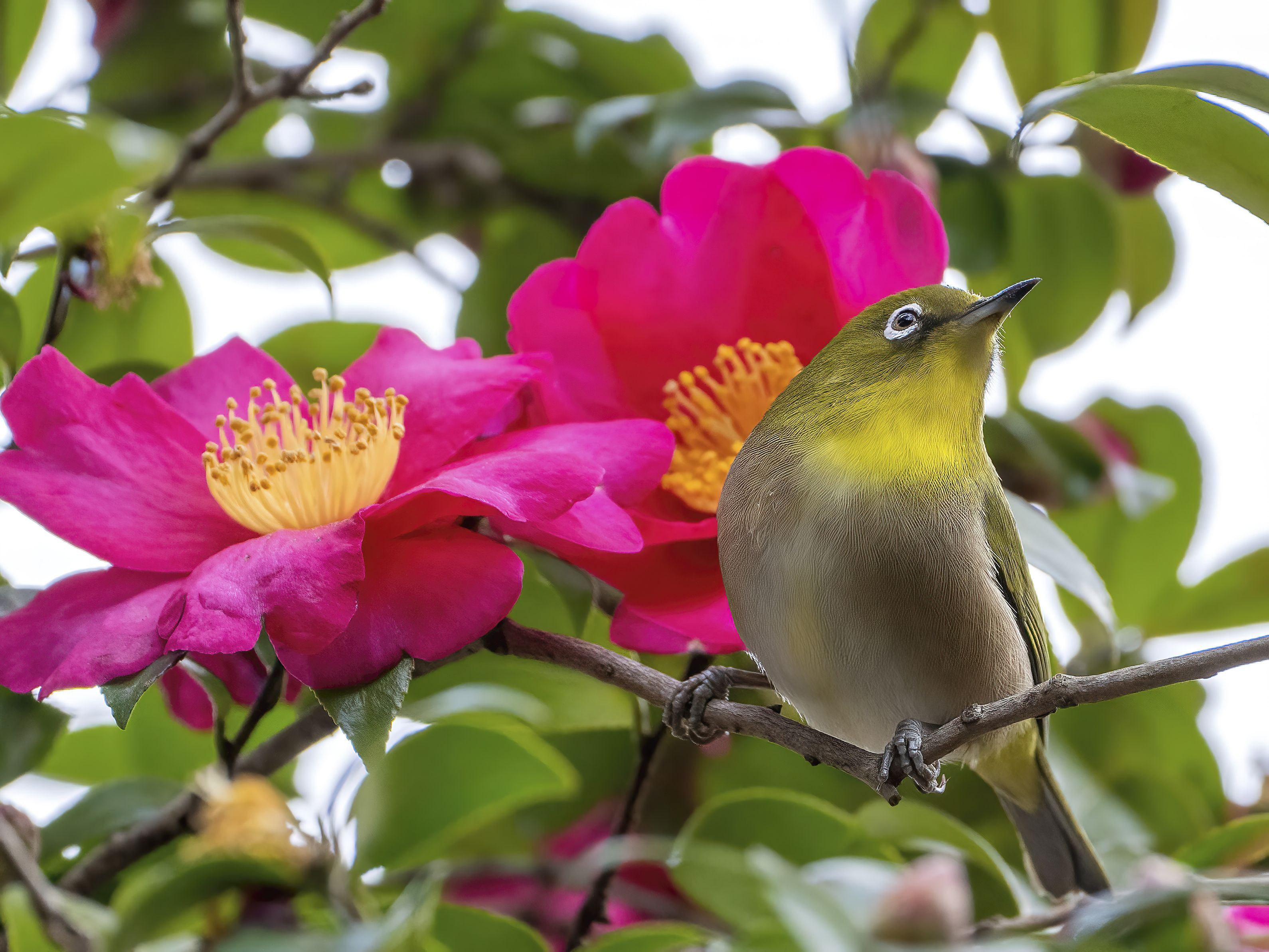 今が旬のサザンカと#メジロ#。