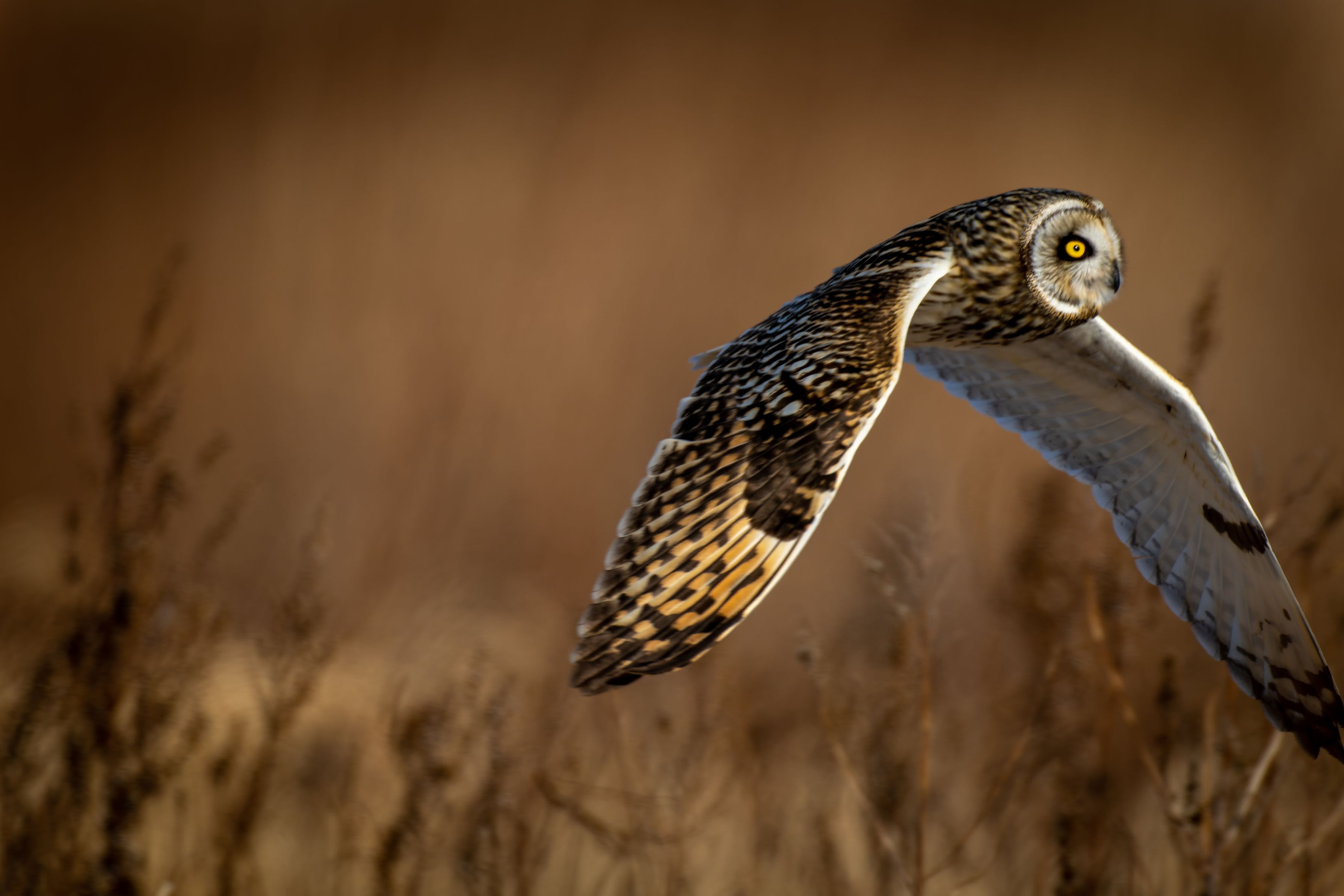 3シーズンぶりに出会ったコミミズクは、サービス満点に至近距離を飛んでくれました。 一番いい感じで撮れた一枚も、腕が足りず翼が切れてしまいましたが、捨てきれずUPします。
