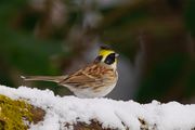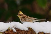 週末に待望の積雪。魔法の倒木にも雪が積もっているはず? -4°路面も凍っていて怖かったけれど・・・やっぱりいました!雪のミヤマホオジロさん。