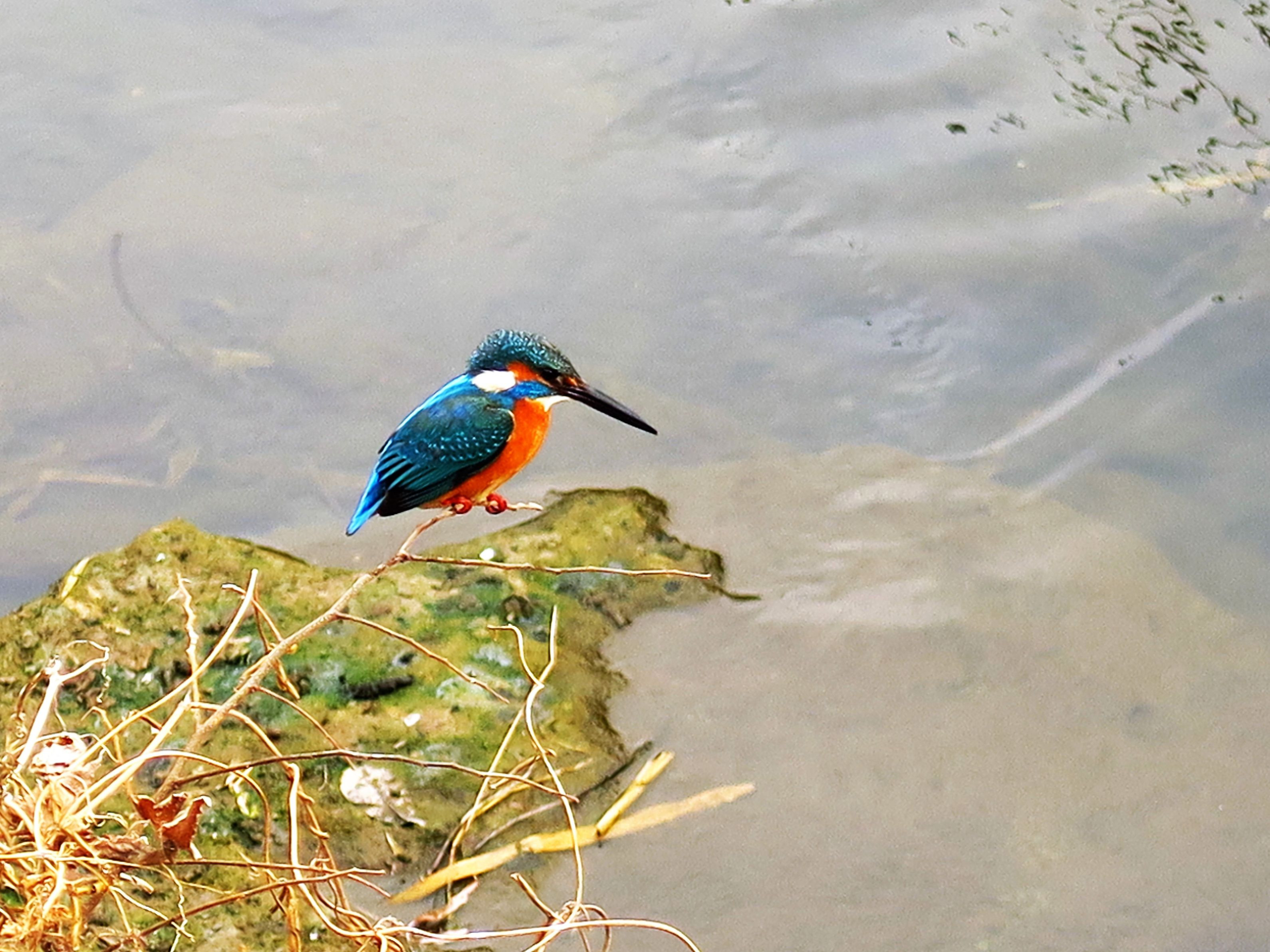 鶴見川の川岸で偶然見かけた獲物を狙うカワセミの姿を撮った一枚です。
