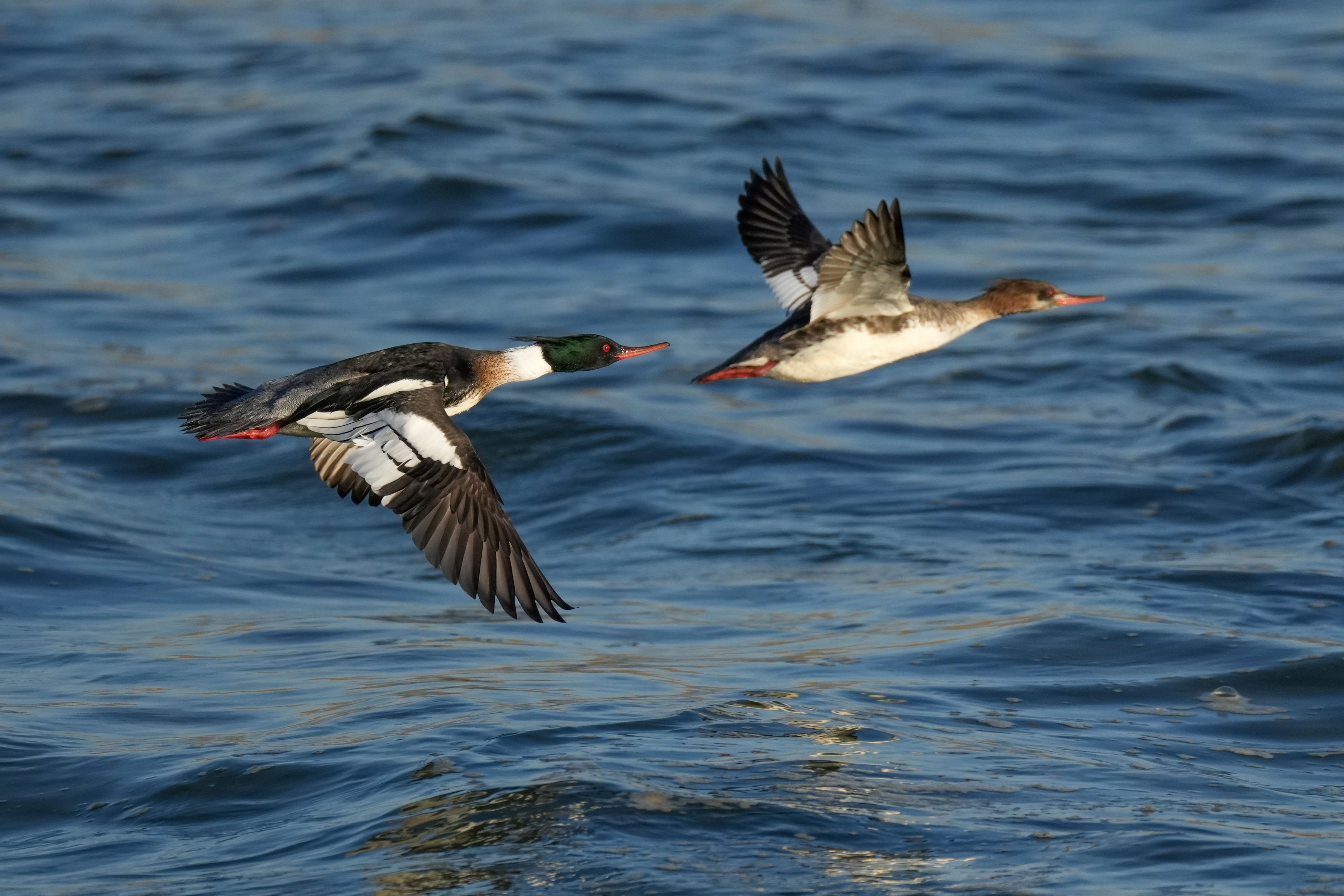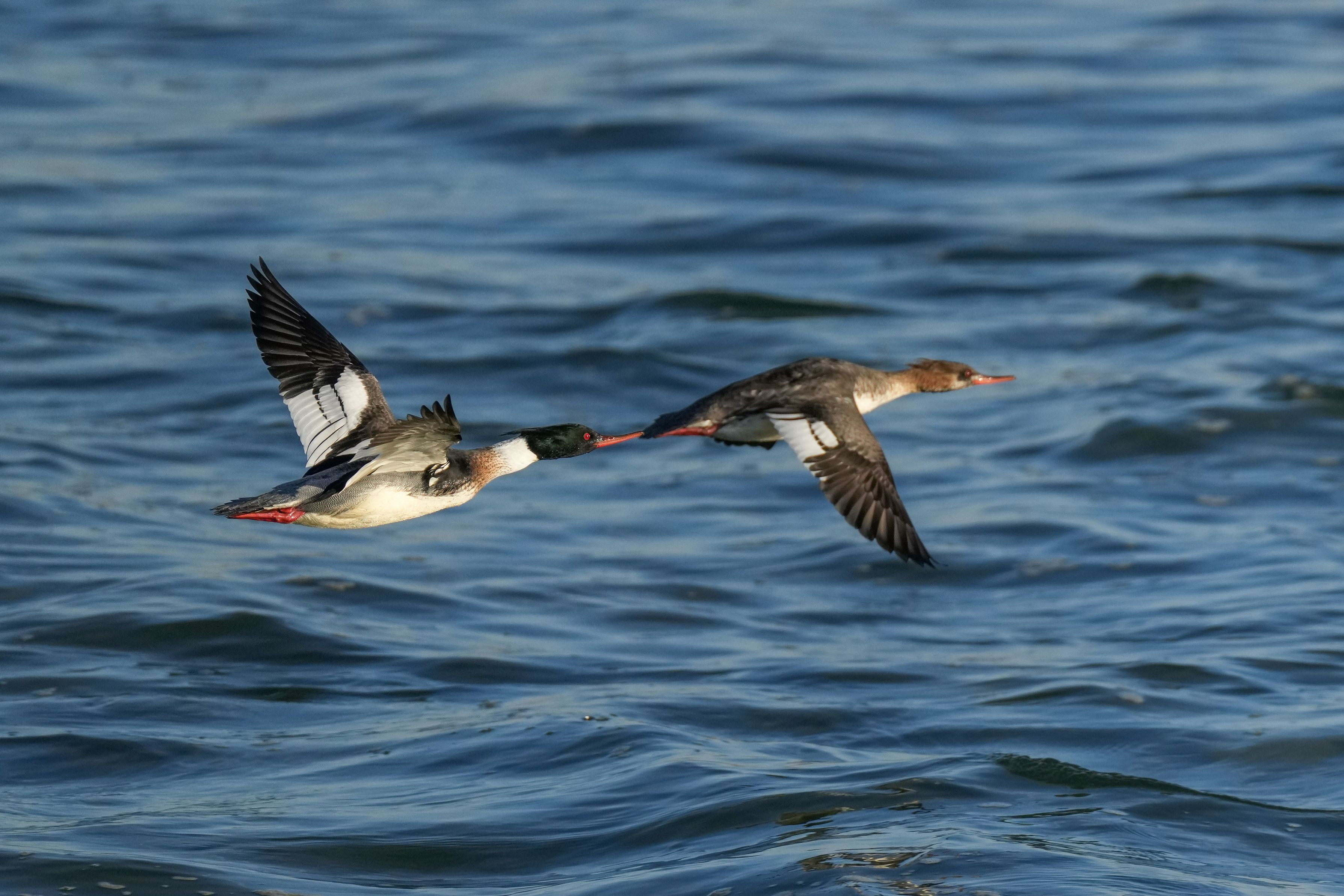 単独飛行することが多いウミアイサですが、この日はペアで飛んでくれました。