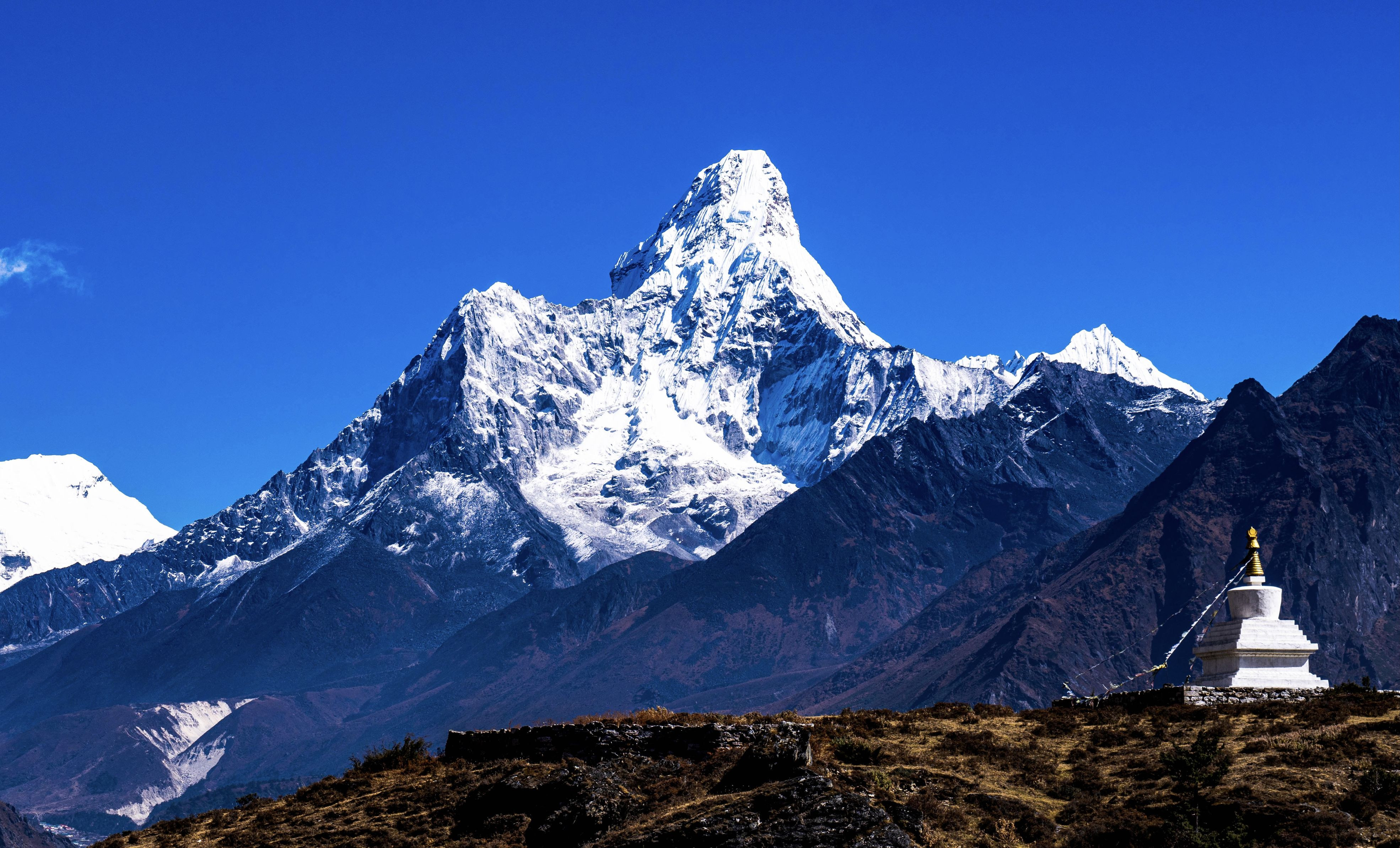 Ama Dablam(6,812m)は切り立った稜線と山肌が特徴的で美しく、エベレスト街道の中でも特に人気の高い山。