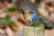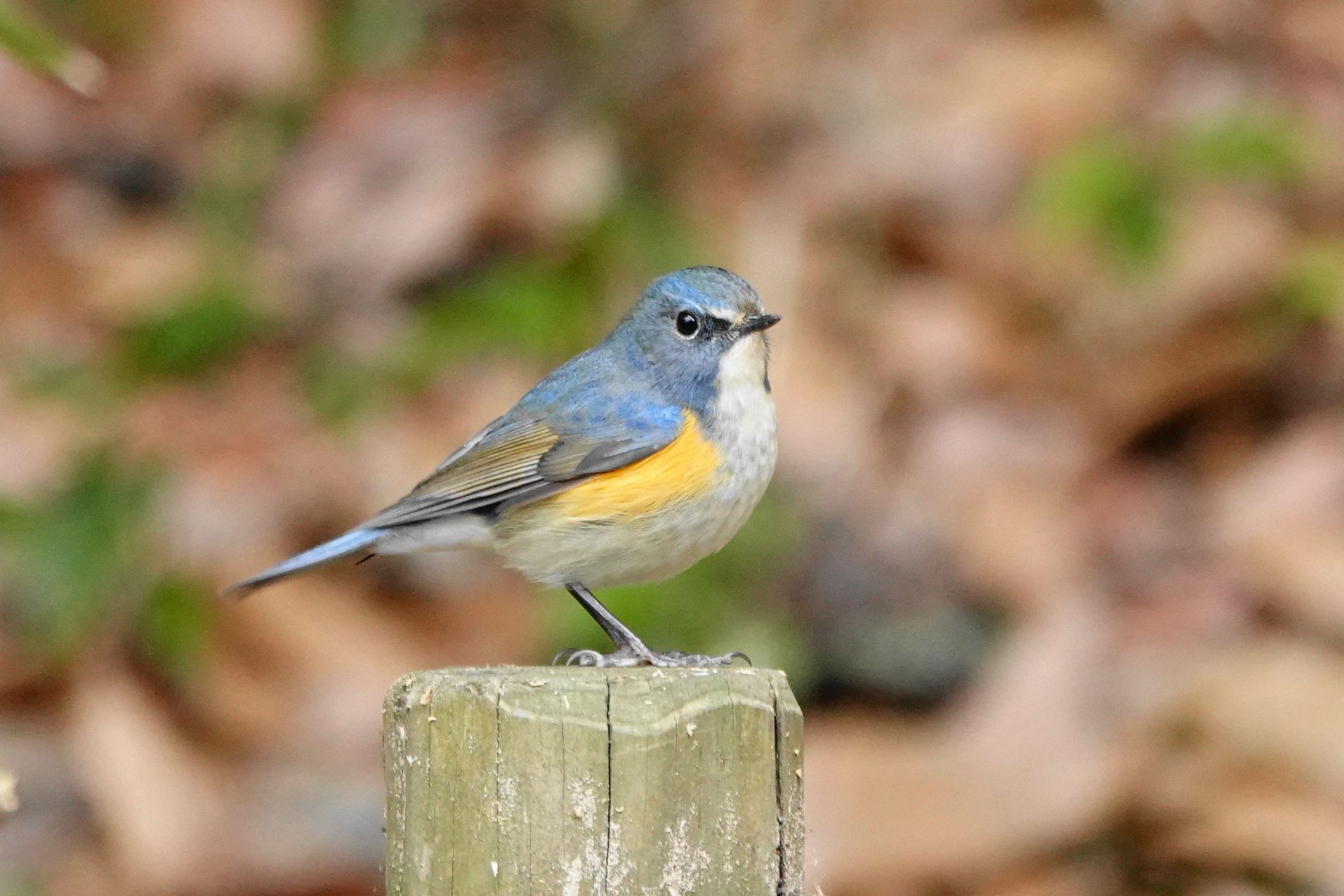 公園に連日#ルリビタキ#の若鳥がきてくれました。それもこんな近くで羽も綺麗に広げてくれました。