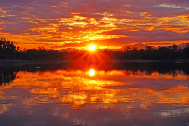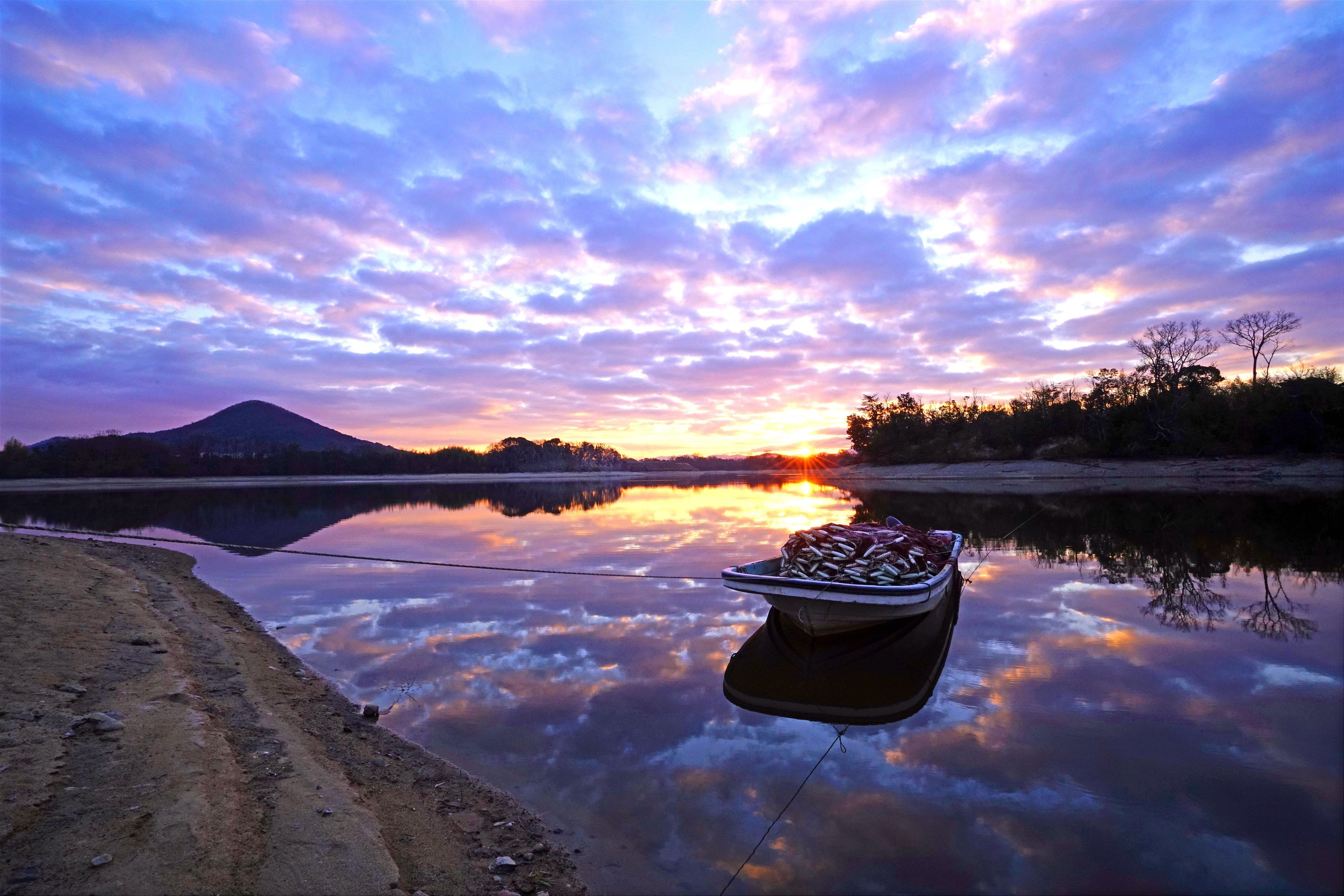 朝焼けのため池