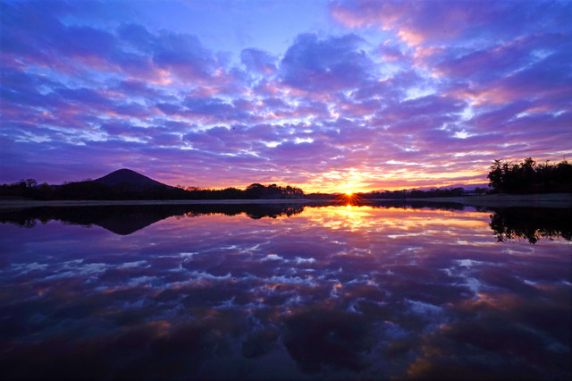 陶富士を映すため池の朝。