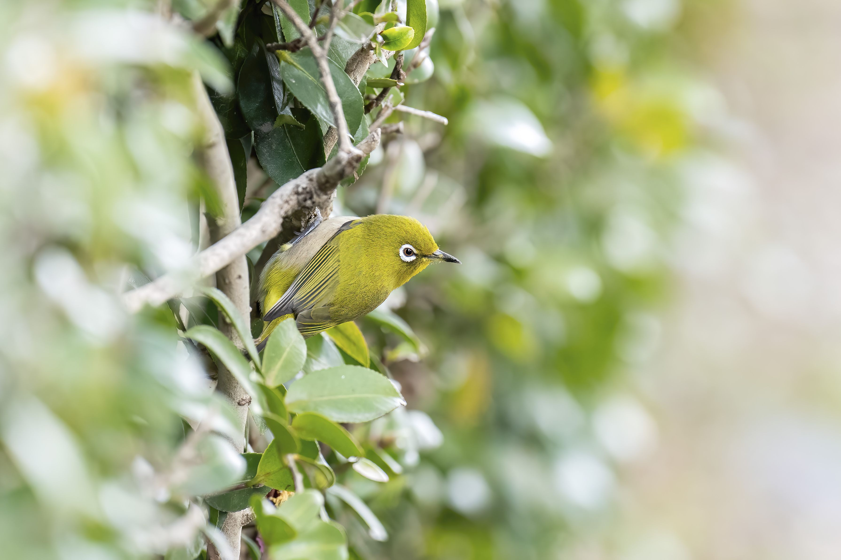 花の付いていないサザンカに#メジロ#