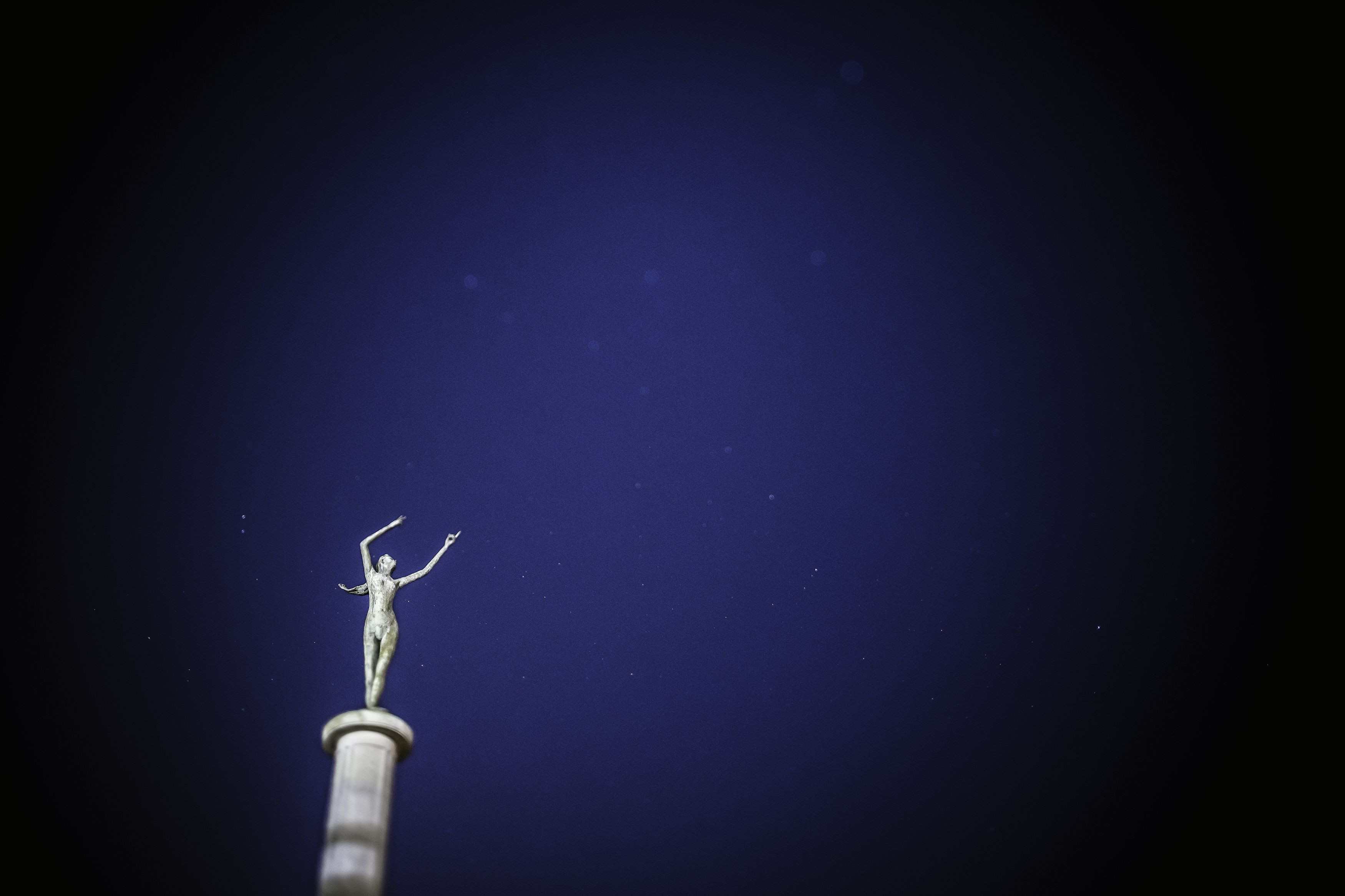 夜は誰もいない公園で、空に向かって手を上げる少女像が印象的で、立ち寄る度に撮影しています。