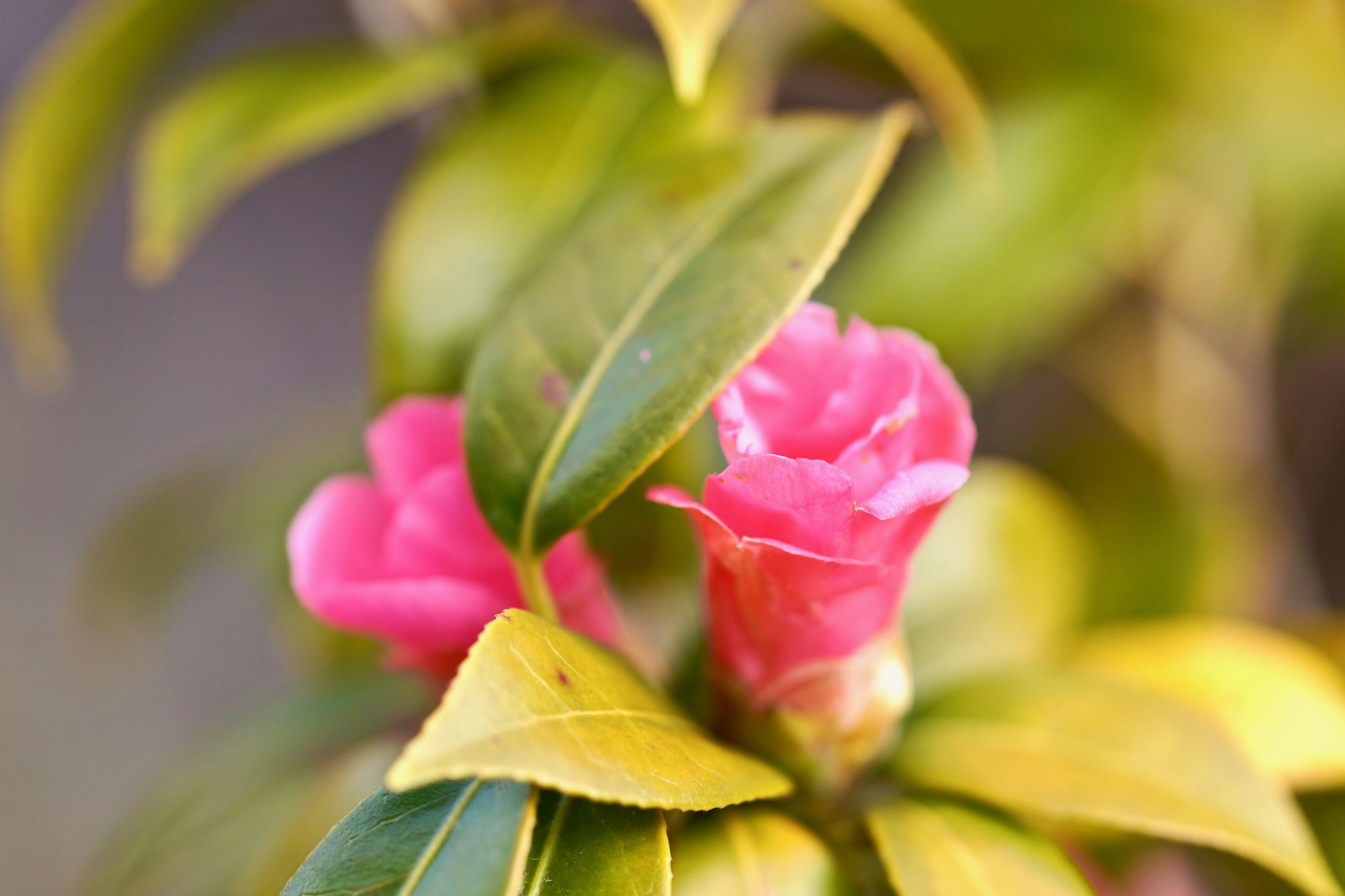 頂戴ものの鉢植えの椿、可愛らしい花をつけました。