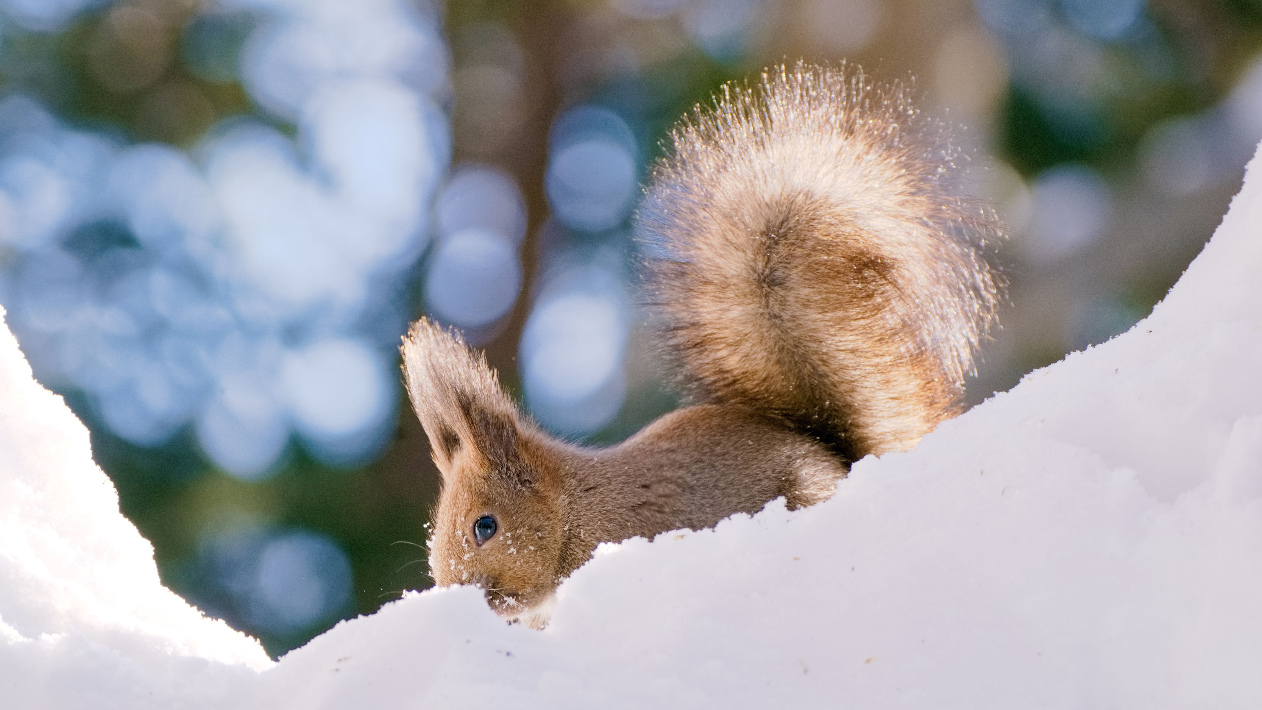 雪を掘って食べ物を見つけたところで、目が合ってしまいました。