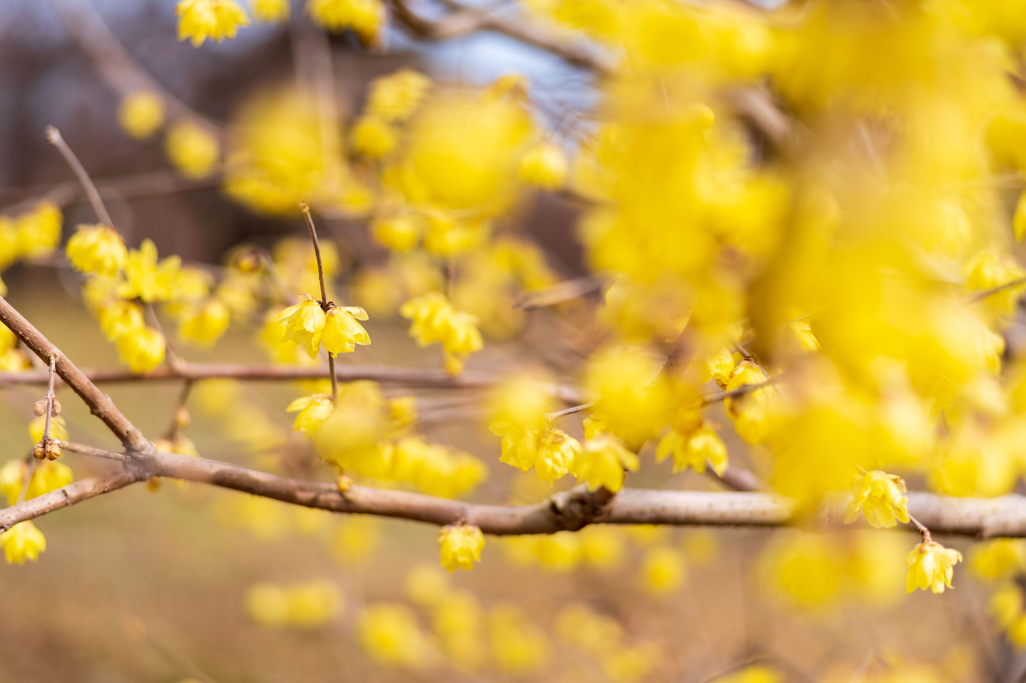 見頃を過ぎてしまったかなと思った蝋梅が満開でした。 そして、梅は開花にむけて準備中。