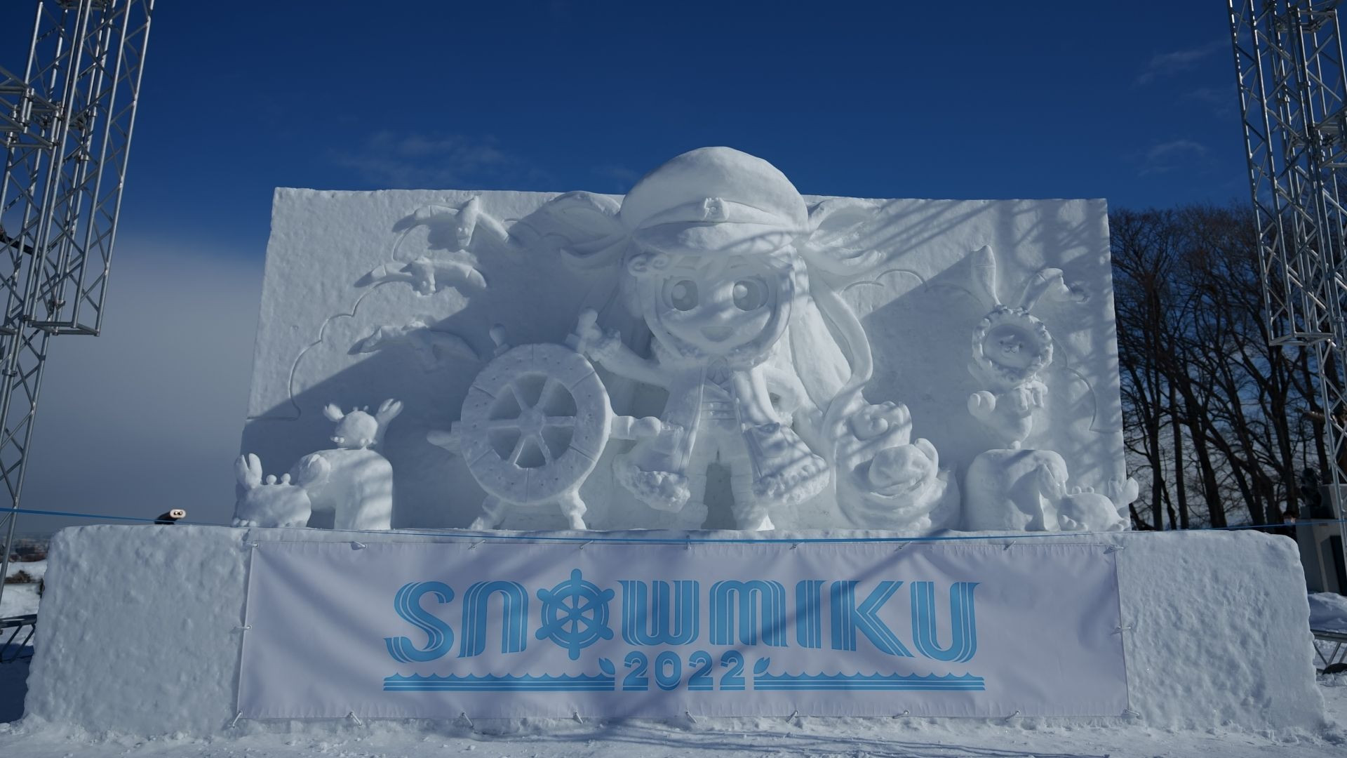 さっぽろ雪まつりが中止になり、代替措置で羊ヶ丘展望台に製作された雪ミク雪像です(2022年2月5日撮影)。