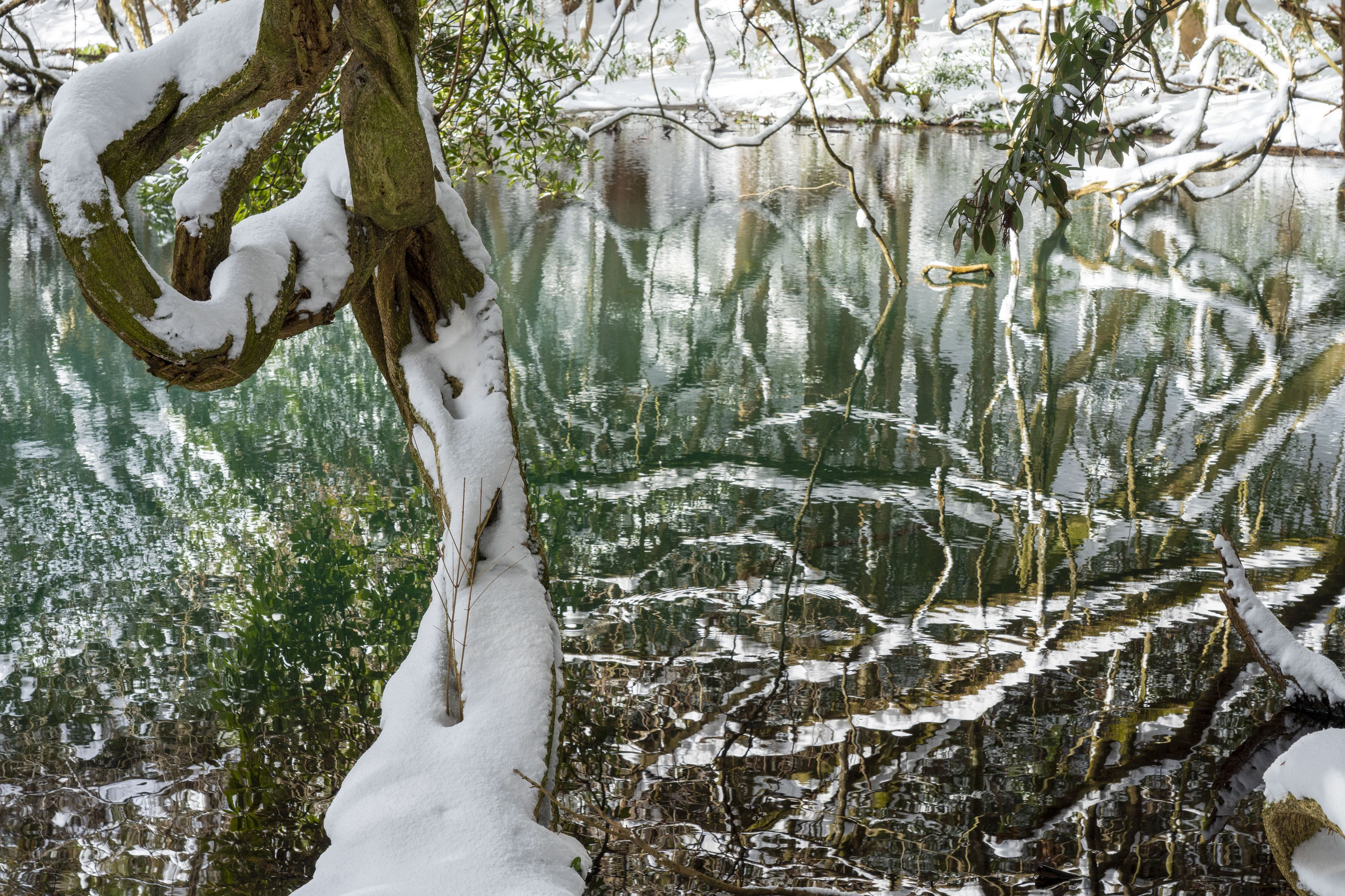 雪の降りしきる一枚を求めて訪れたのですが 生憎失敗してしまいました。 それでも時折のぞかせる日の光が 冬場の丸池様を彩りとても素敵でした。 #山形県# #遊佐町#