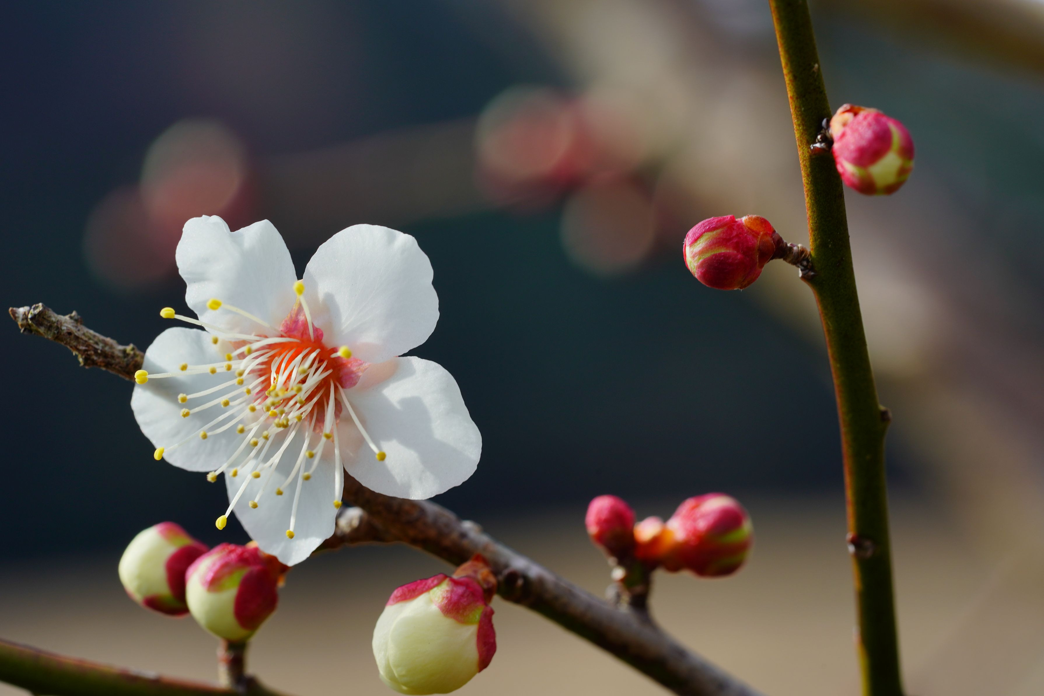 散歩道 梅の木によいよ花が咲き始めました。よいよ春がそこまで