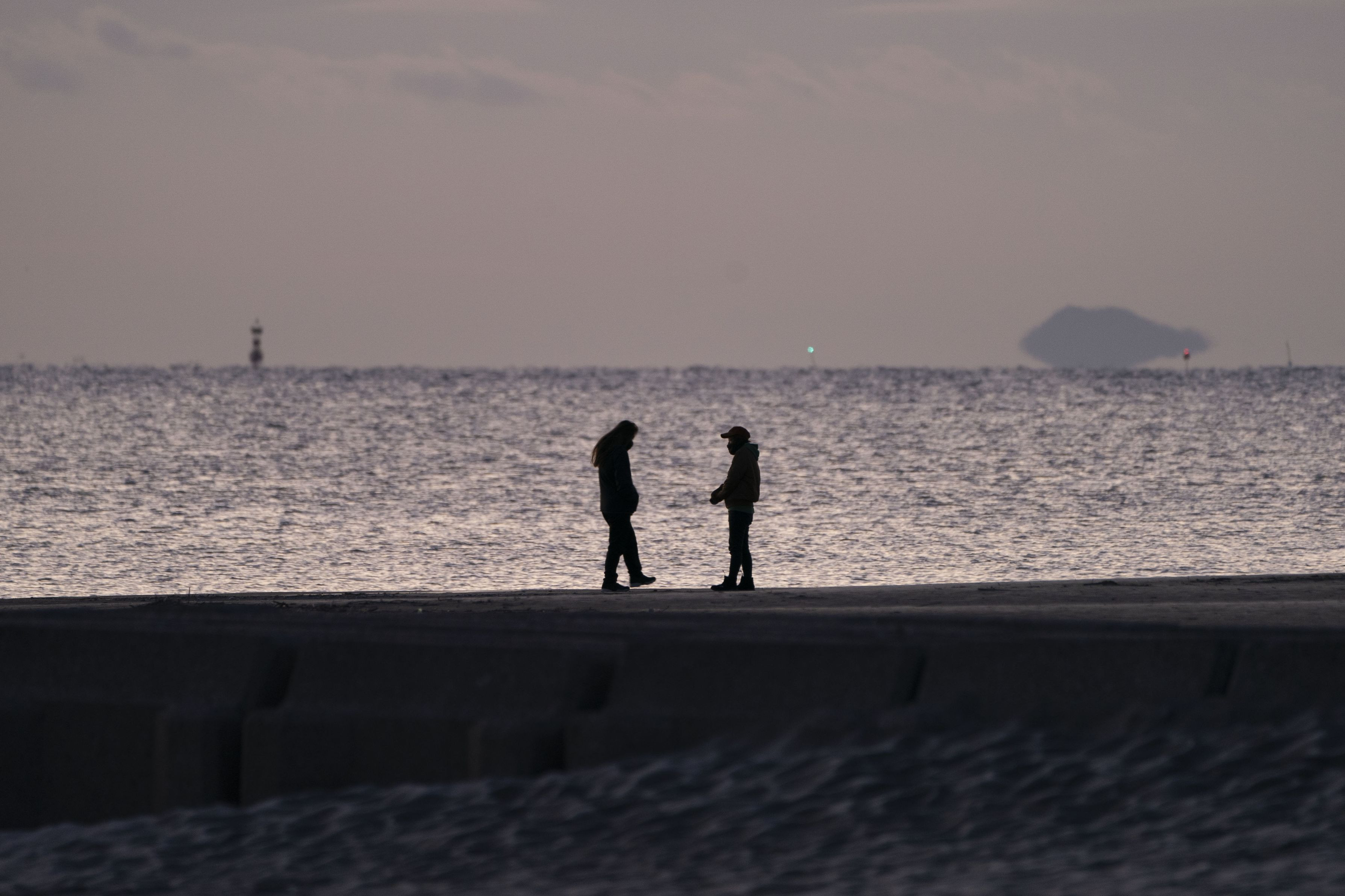 日の出を待つ間に楽しそうなカップルを