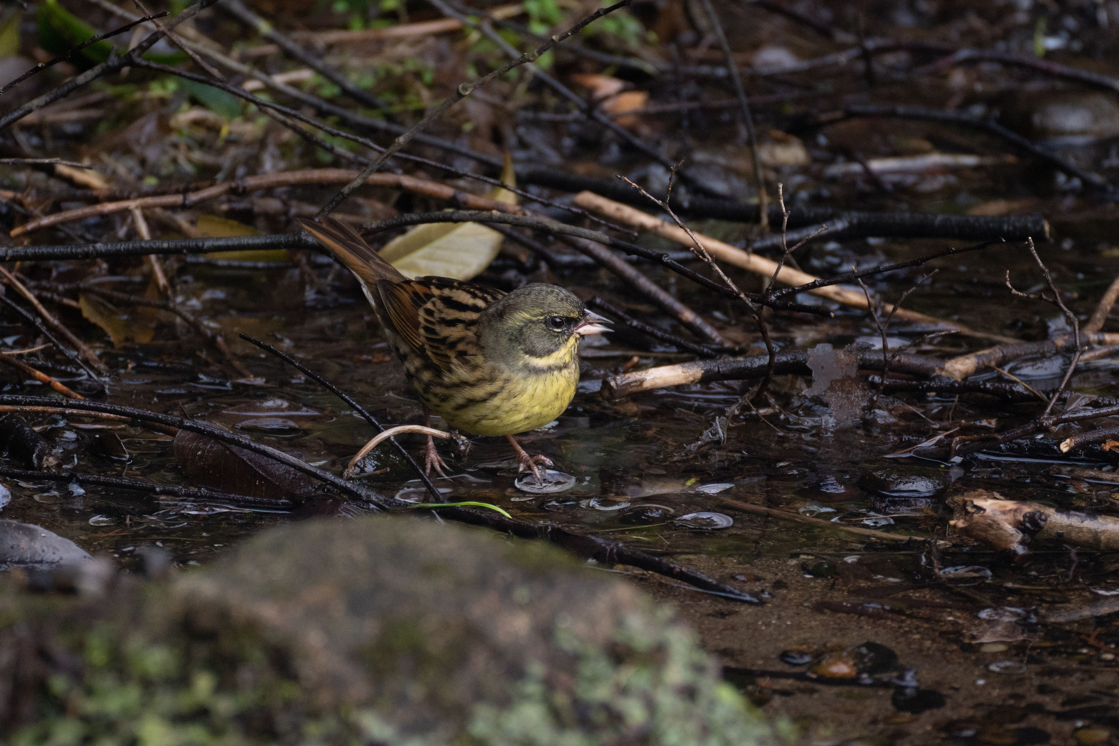 公園のベンチで休憩中、アオジがちょろっと出現。 #アオジ#