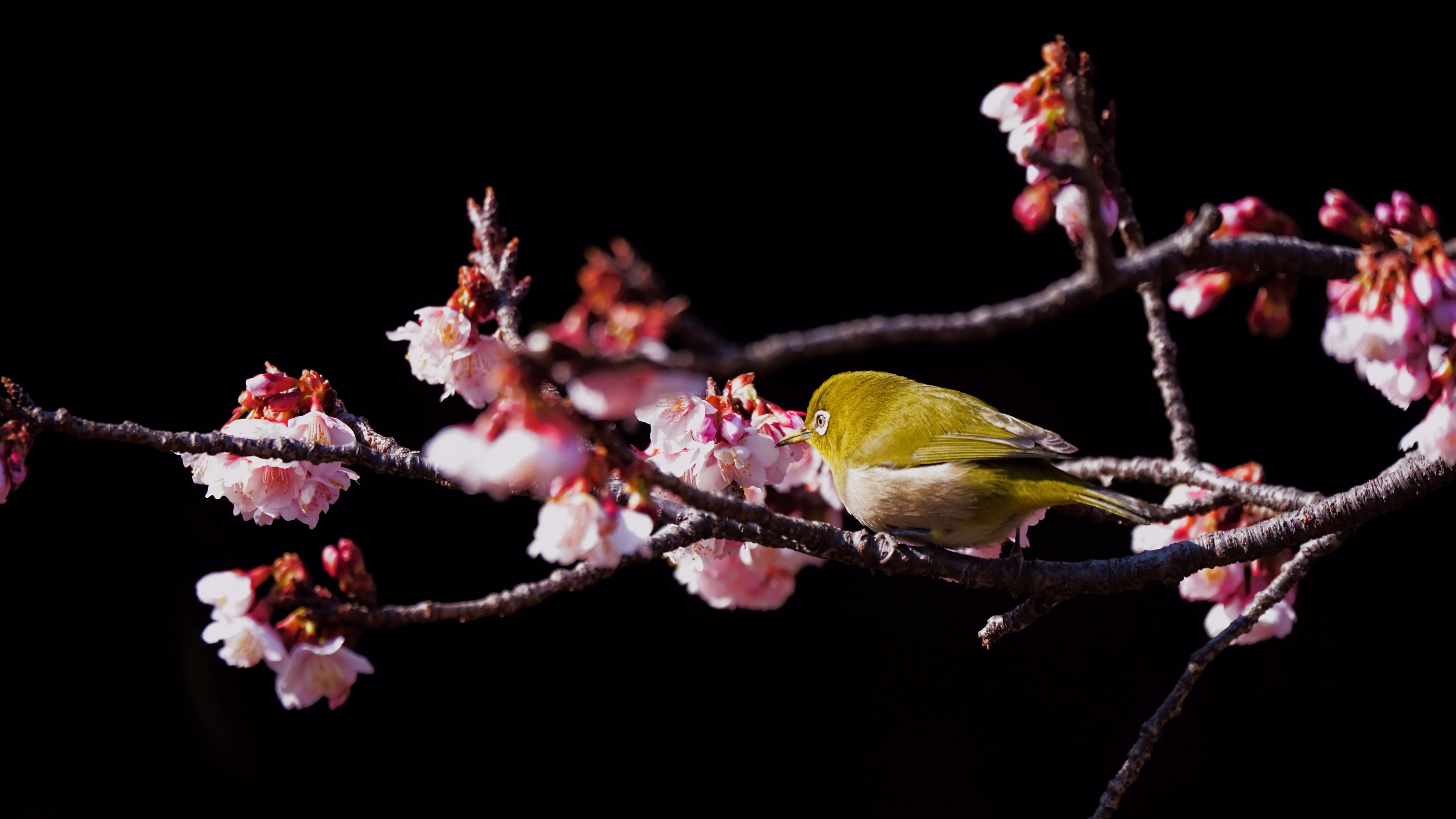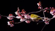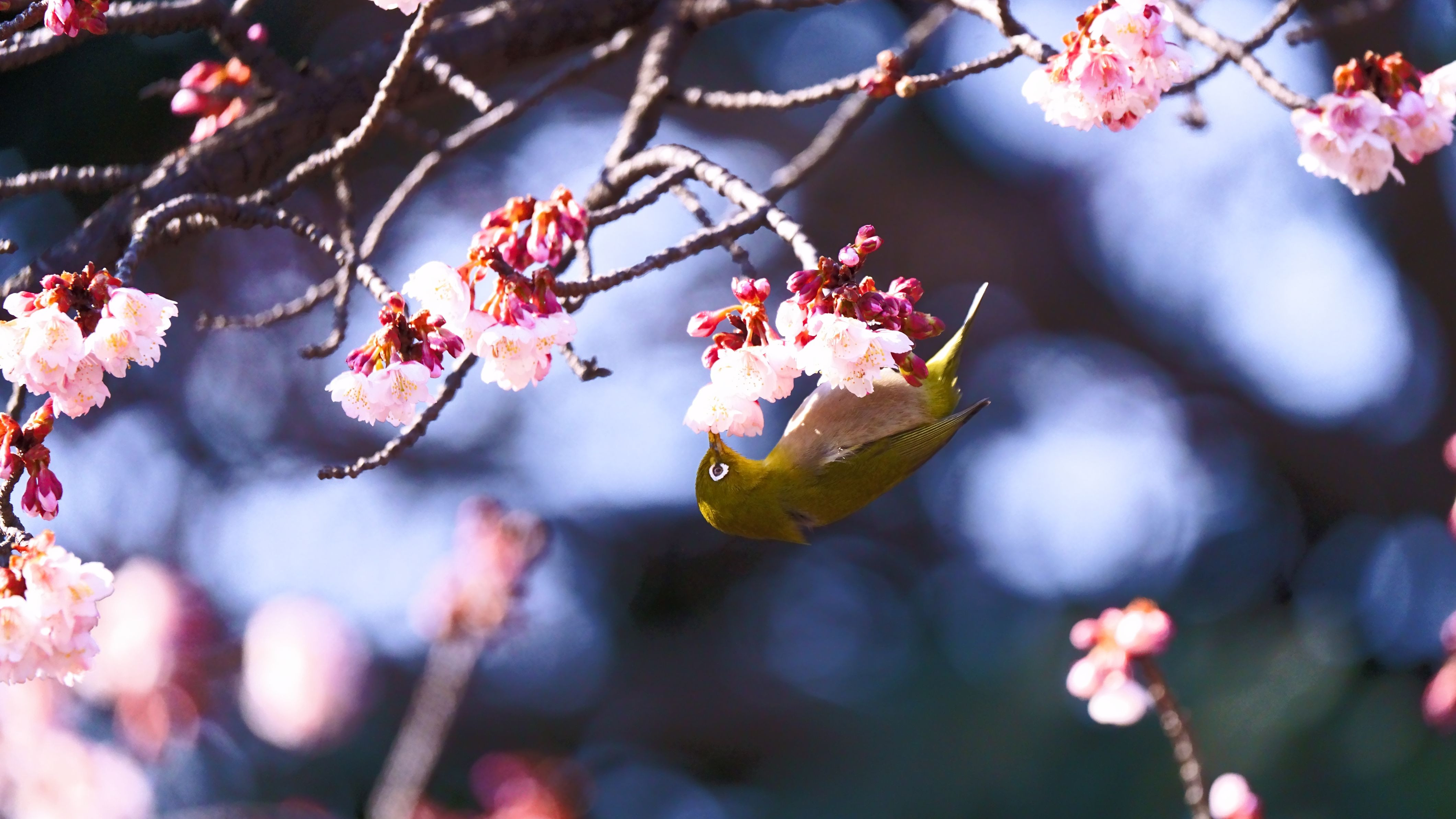 西新井大師にて。桜は早咲きの安行桜(ソメイヨシノの改良品種)です。 #メジロ#
