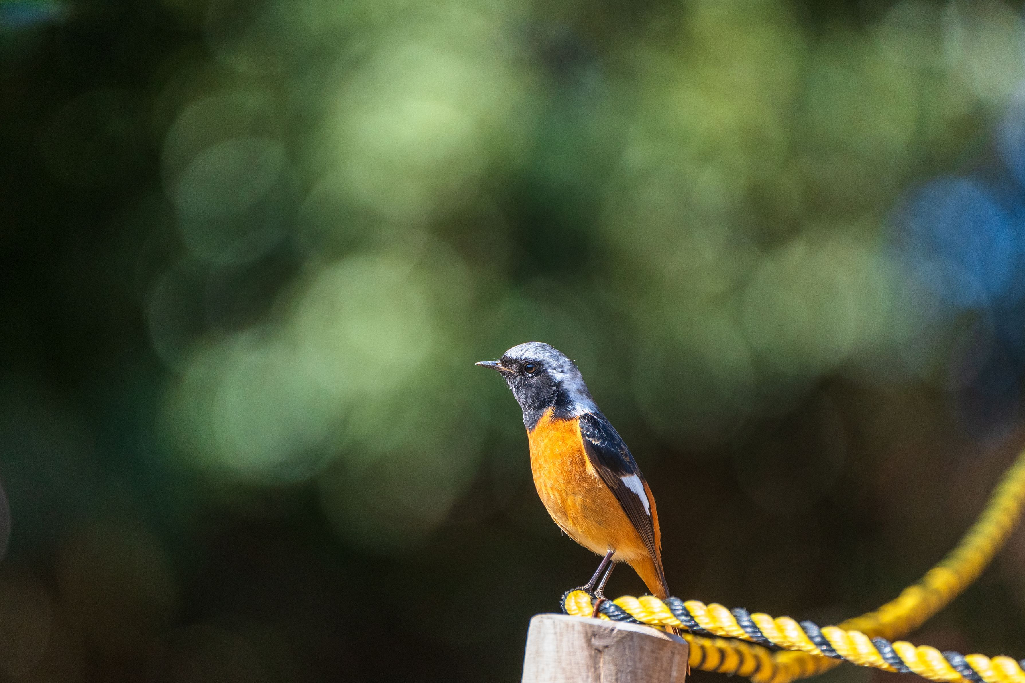 公園の遊歩道にて 目の前をオレンジ色の小鳥が横切ったのでジョビ子ちゃんだ!と思って近づくと、少しスリムなジョビ男くんでした *^^*