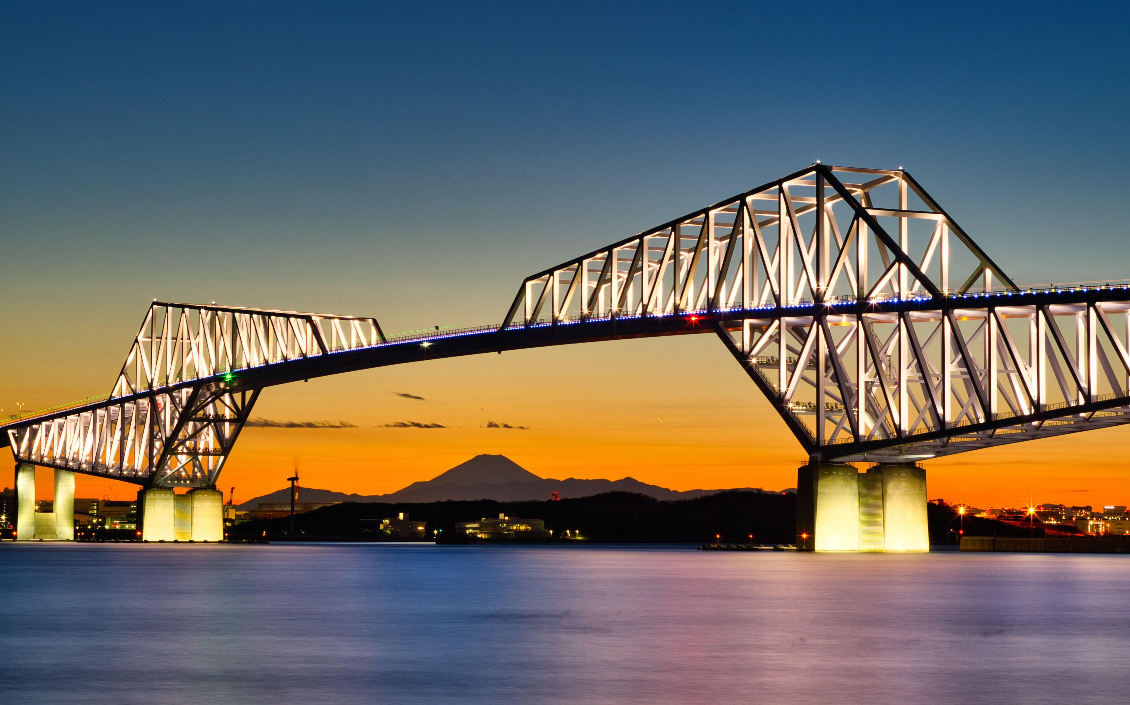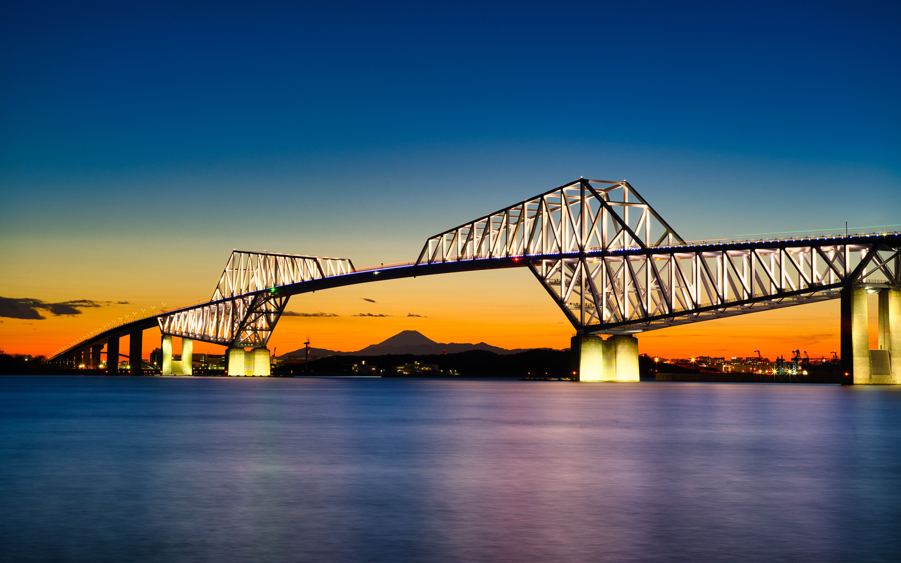 ダイヤモンド富士を撮った後は・・ 東京ゲートブリッジライトアップと富士山夜景を撮りました。 長秒露光30秒で海を輝かせて・・空・海・ライトアップの煌めきを表現しました。 ライトアップ照明は光条キラリ!:8本光条