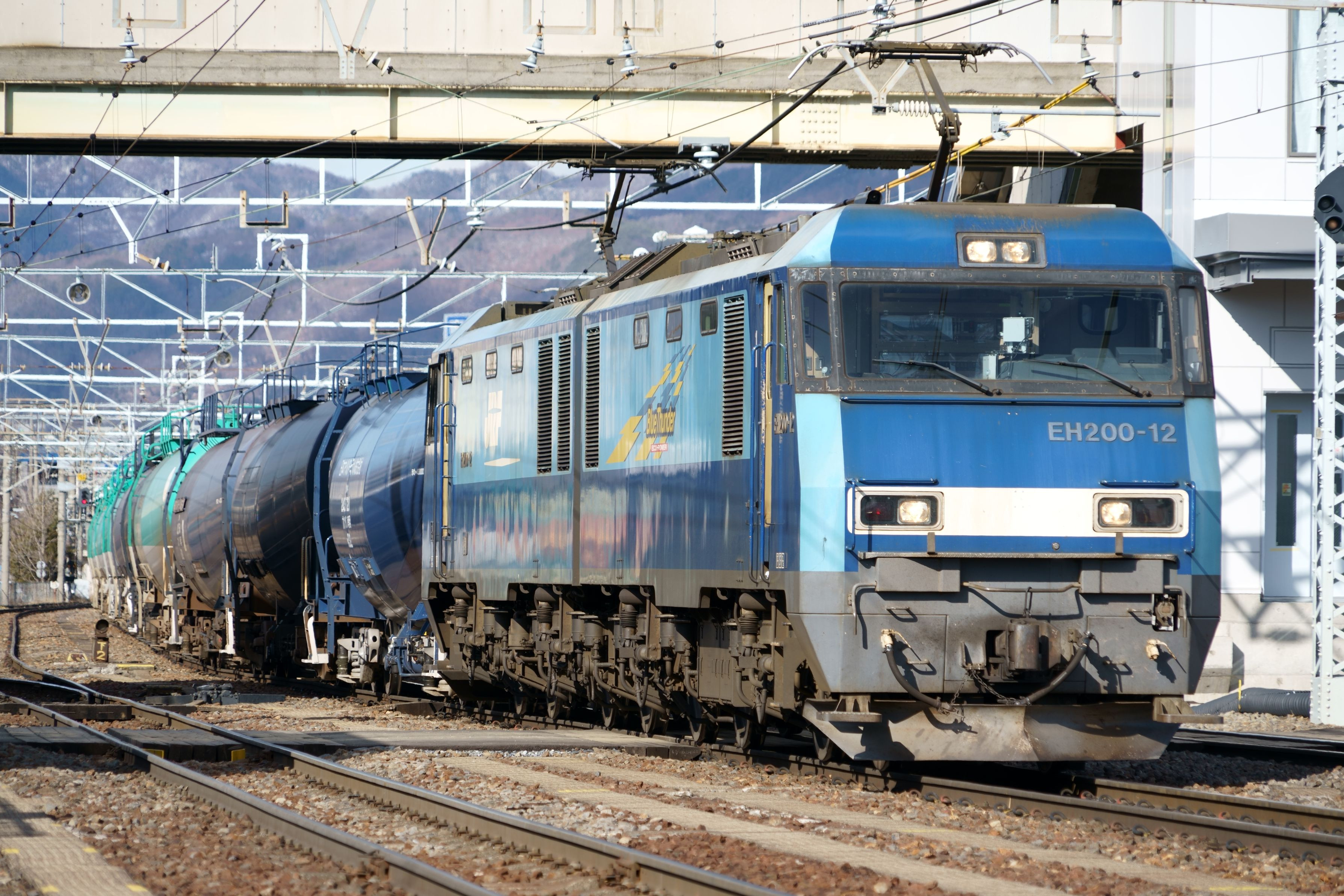 南松本駅で出発を待つ貨物列車