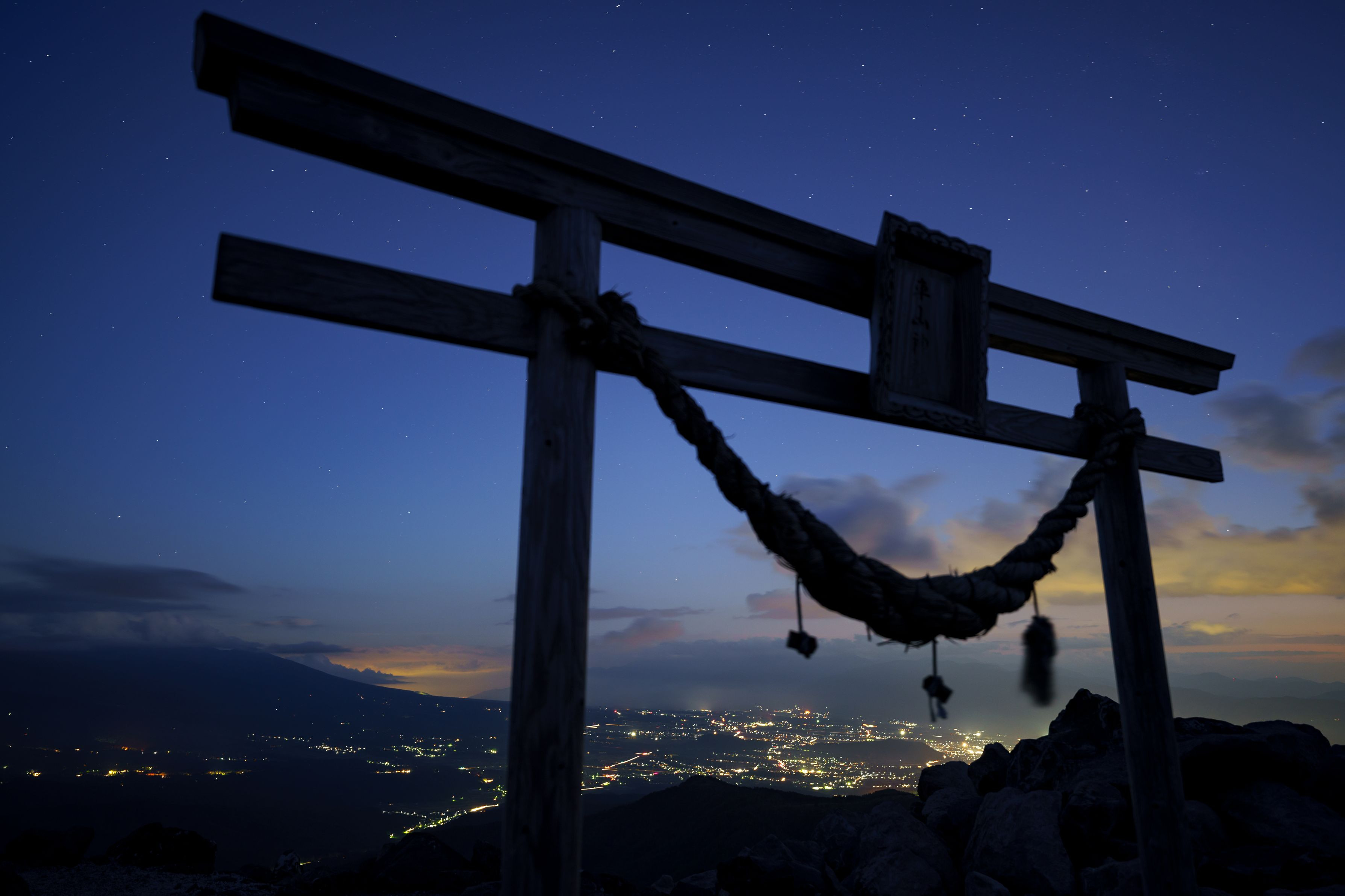 αカフェスペシャルフォトコンテスト一般風景部門にノミネートしましたが、残念ながらノミネート止まりでした。 逢魔時と街を見守る鳥居を対比させて撮影しました。低解像だとわかりにくいのですが、星、夕景、夜景、鳥居全てが美しい光景でまた訪れたい場所です。