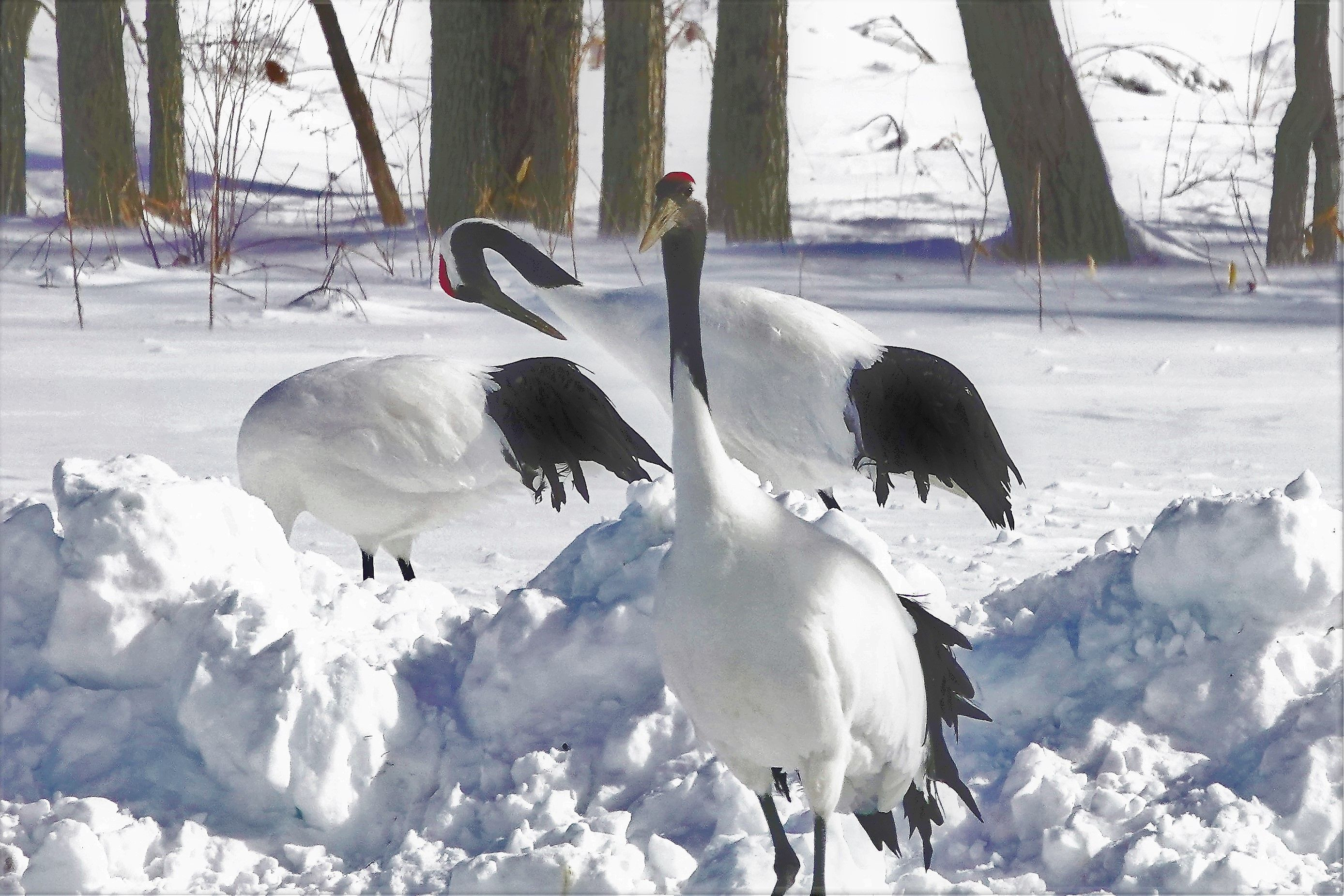 冬の北海道に行ってきました。 大雪に見舞われ、暴風雪で道路は寸断。でも釧路地方は晴れ間があり給餌が行われている鶴居村の鶴見台で#タンチョウ#を見ることができました。30分間の観察時間内になかなか飛んでくれなかったですが、バスに乗り込む時に1羽が飛んでくれました。