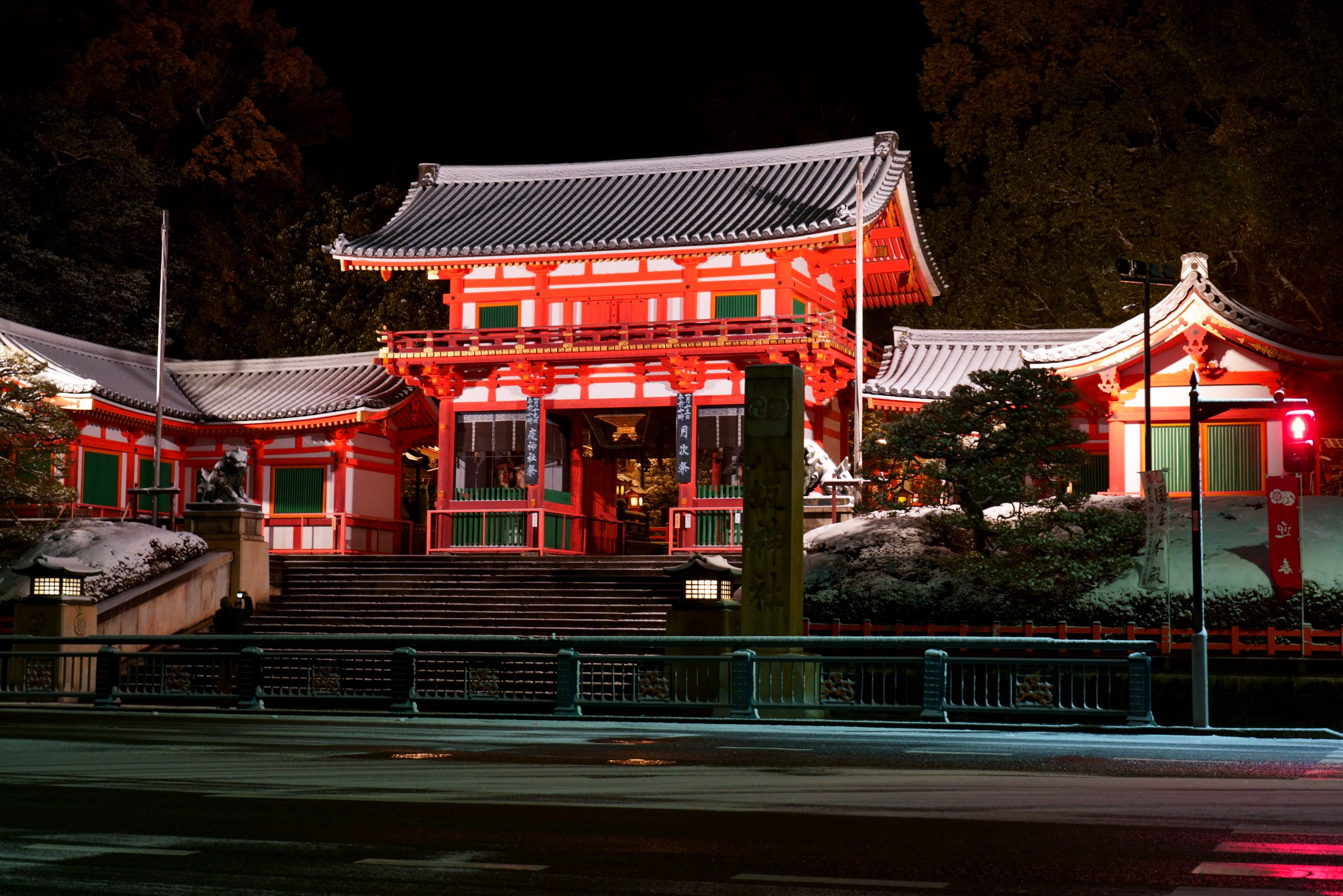 5時39分 八坂神社の西楼門をスタート 気が急いていたので翼廊の左側が欠けるいい加減な構図になりました