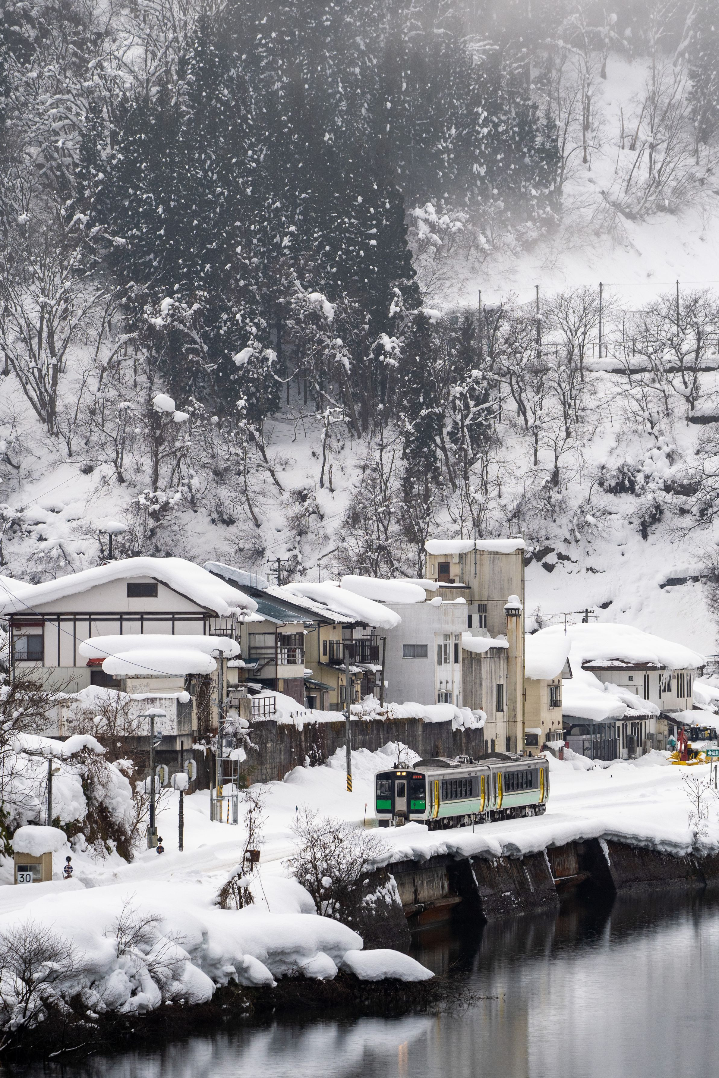 屋根に積もった雪が何となく温泉街のような懐かしさを感じました