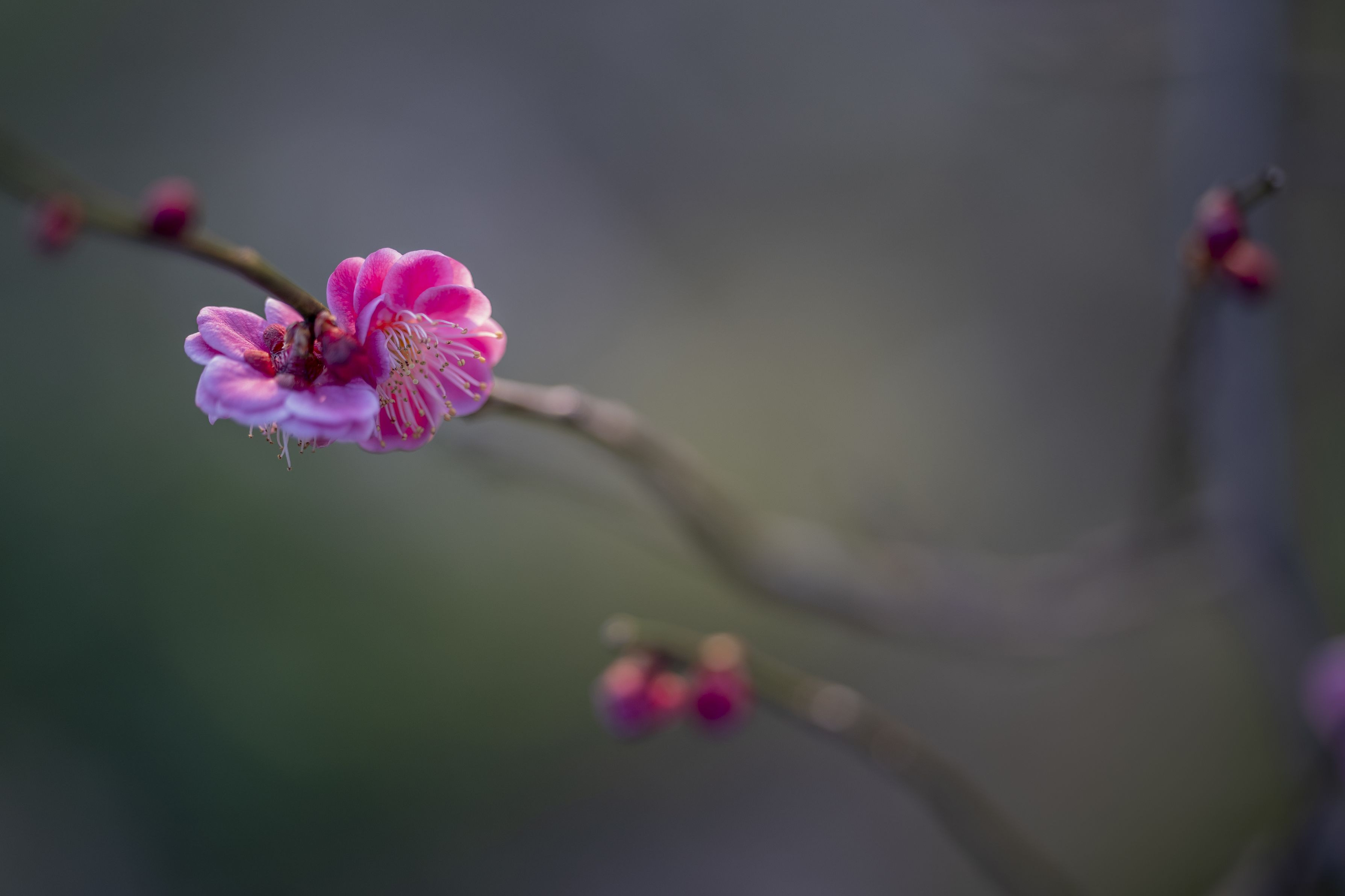 強い南風が止んだ夕暮れ時、梅の香りが漂います、