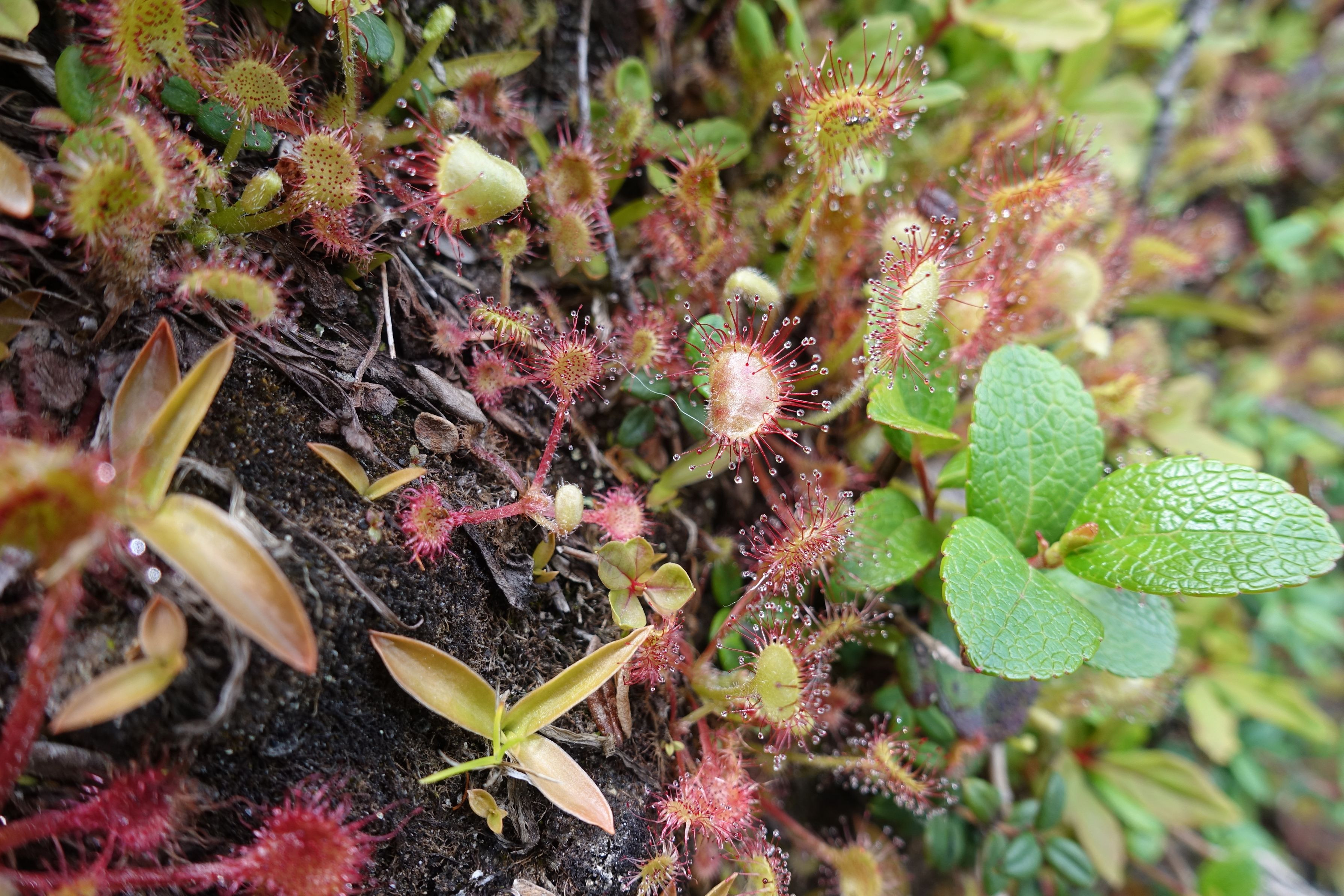 道端で見つけたモウセンゴケ。虫だけでなく人間も引き寄せられてしまいます。