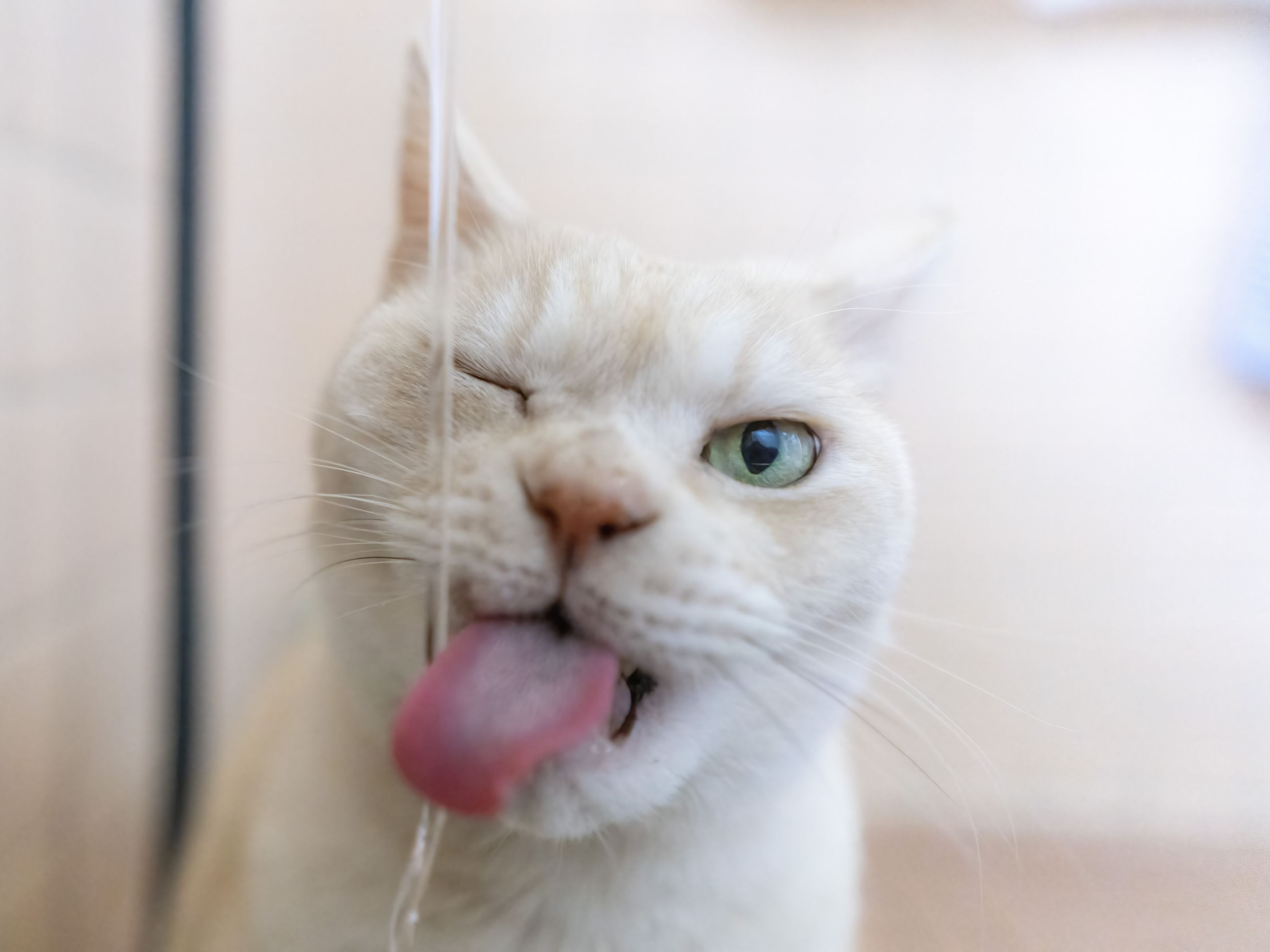 お上品さの欠片もない表情でゴメンナサイ。 ネコさんは舌の裏側で水を飲むって言いますが、この写真でもそう見えますね。