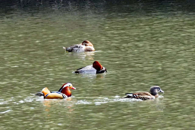 確かに#オシドリ#がつがいで仲良く泳いでいました。