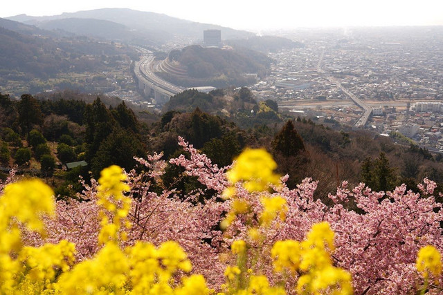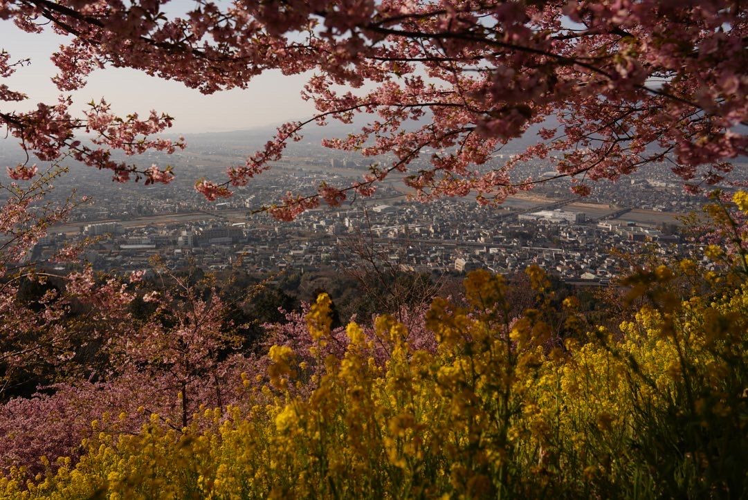 山の上では菜の花と河津桜が満開でした。