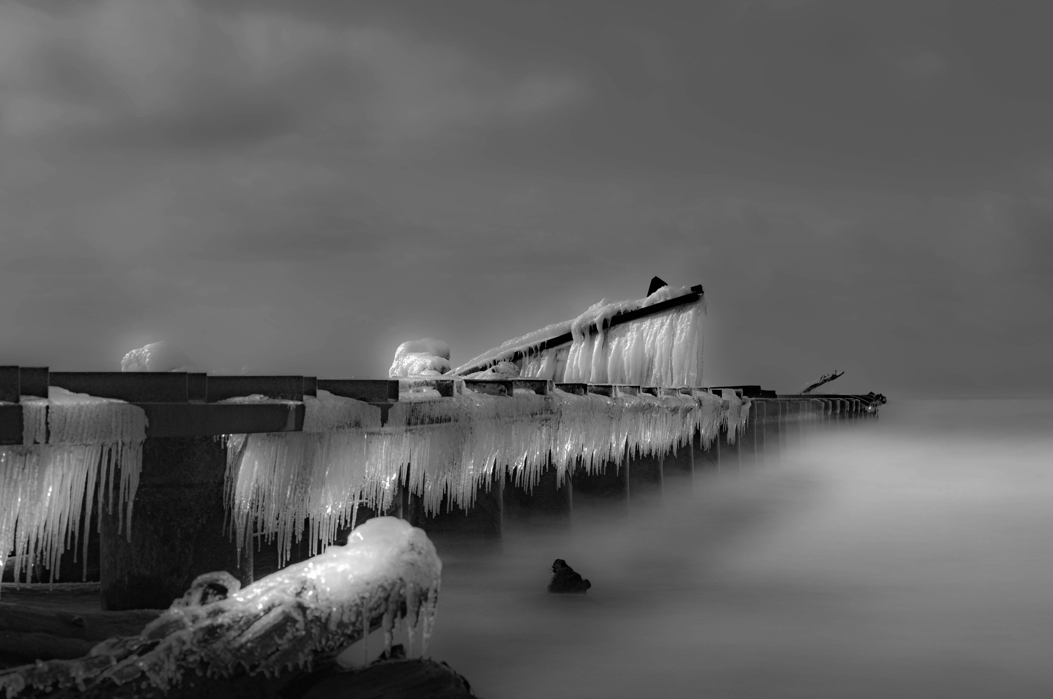 海面に光が反射し氷柱を輝き始めてきました