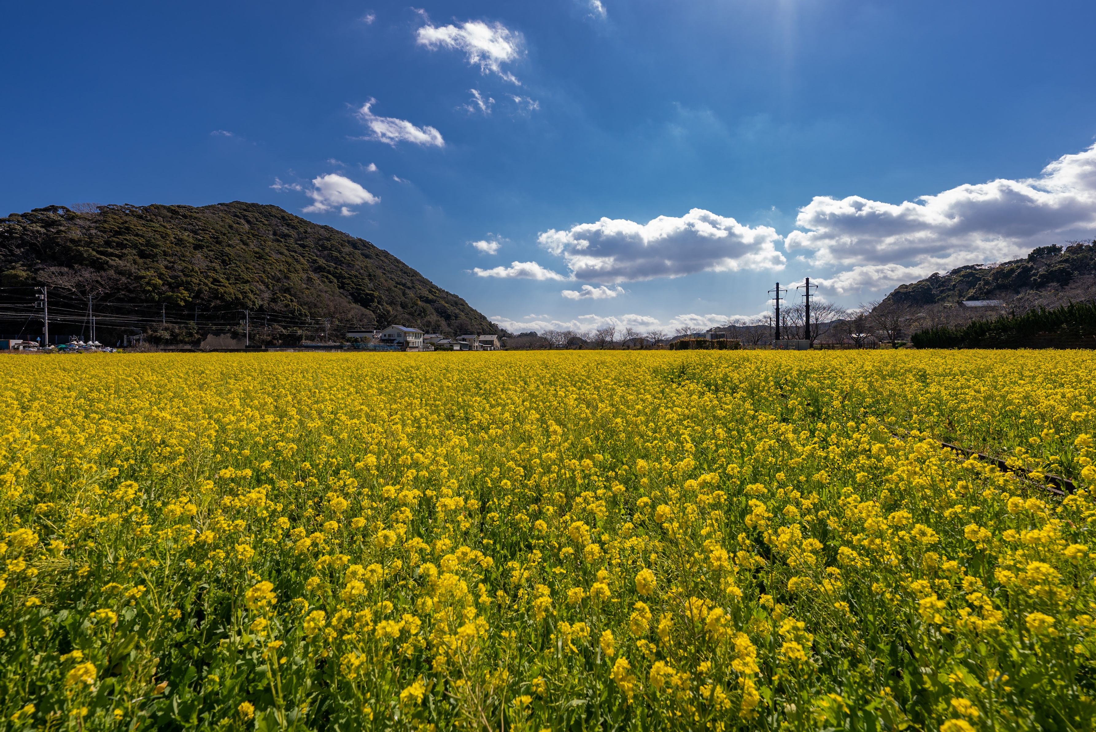 黄色に染まった菜の花畑。 蘇る幼い頃の通学風景。 思わず口ずさむ「おぼろ月夜」。