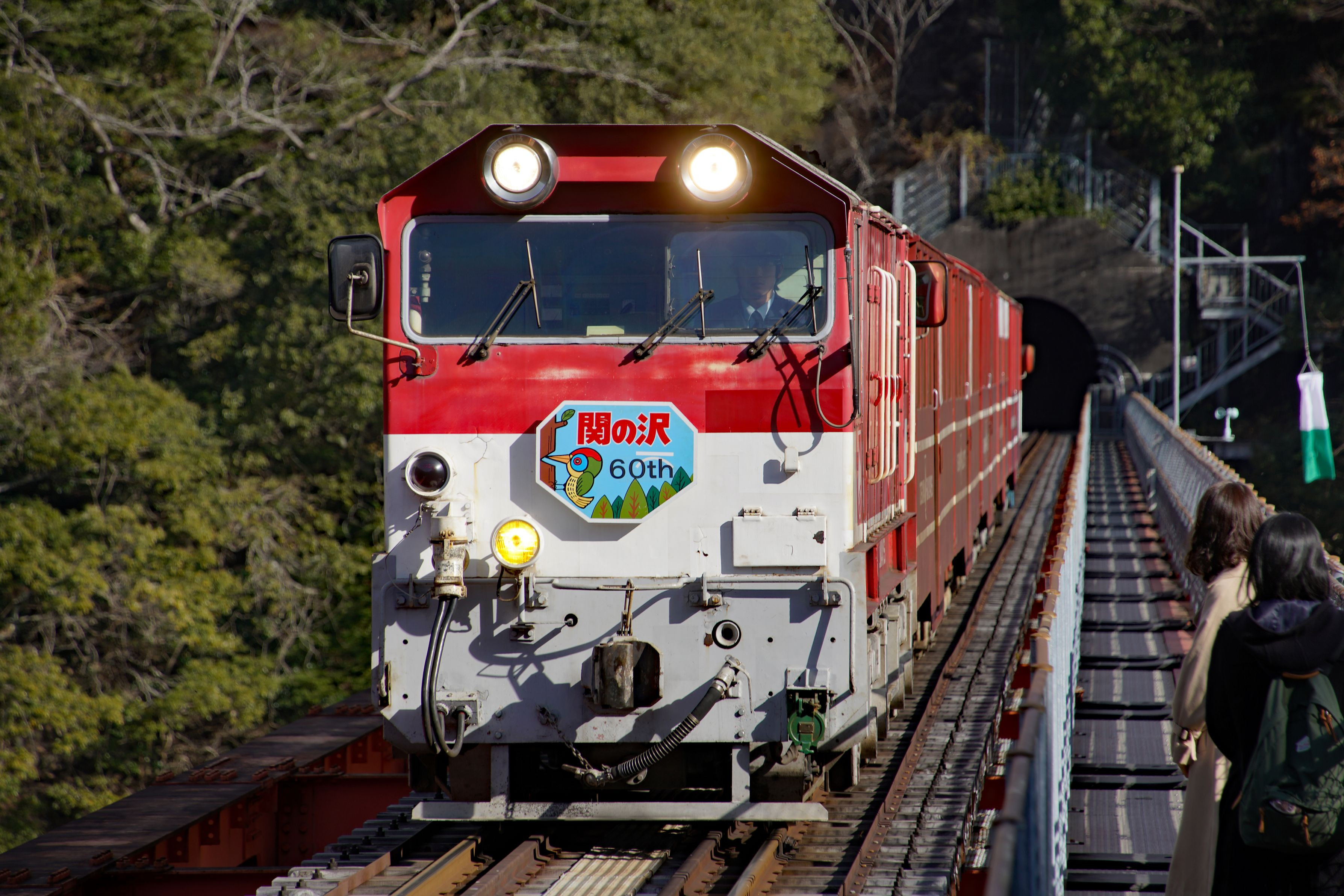 大井川鐵道・奥大井湖上駅へつながる鉄道橋、通称《レインボーブリッジ》は遊歩道が設置されており、走行する列車のすぐ脇を歩行可能です♪