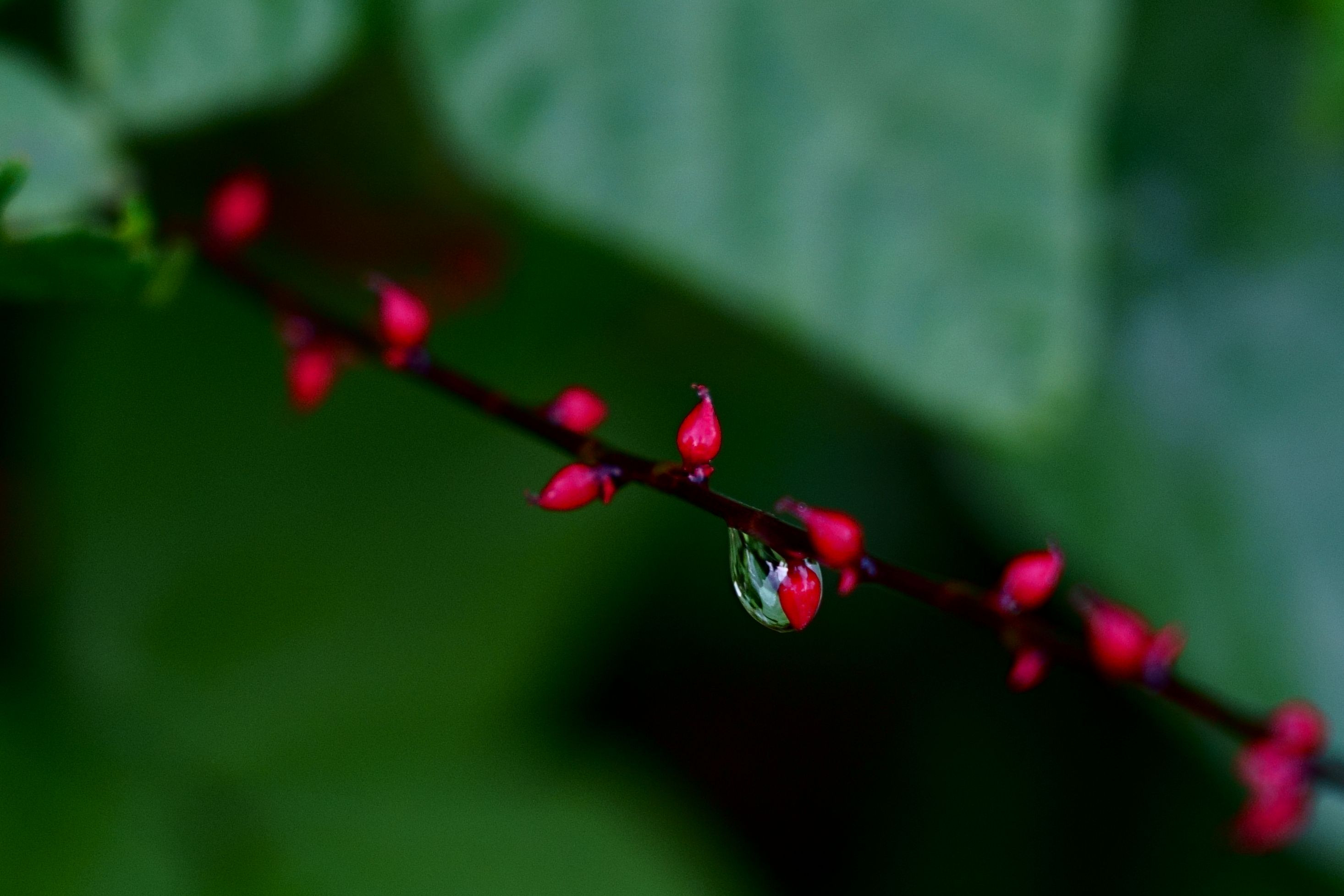 雨上がりの道端に目を引く"赤"を発見。